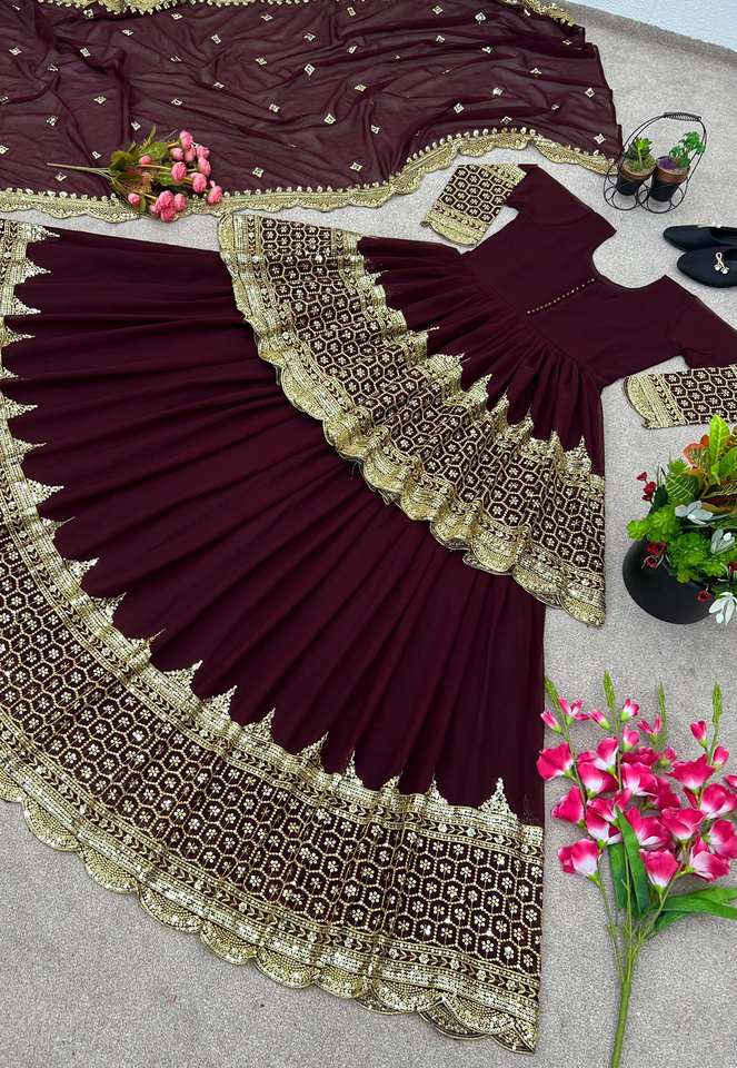 ชุดอานาร์กาลีพรีเมียมสำหรับงานแต่งงานและงานเฉลิมฉลอง พร้อมงานปักเลื่อมและผ้าคลุมไหล่เน็ต – ผู้ผลิตขายส่ง