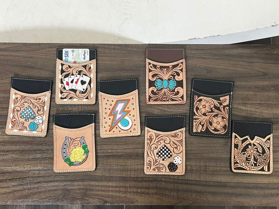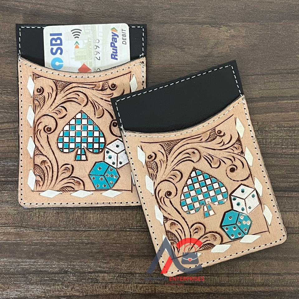 Type:Hand Tooled Cow Leather Credit Card Holder Wallet