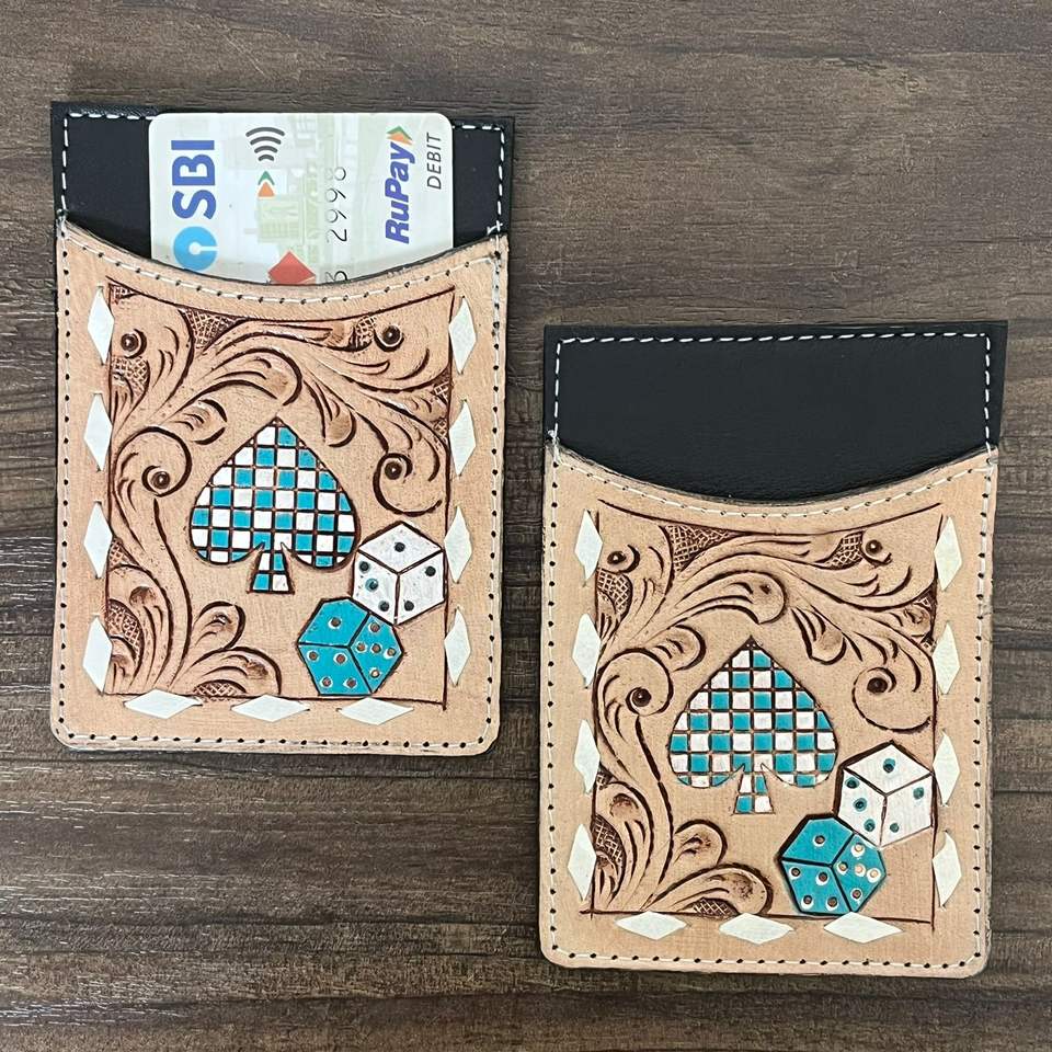 Hand Tooled Cow Leather Credit Card Holder Wallet