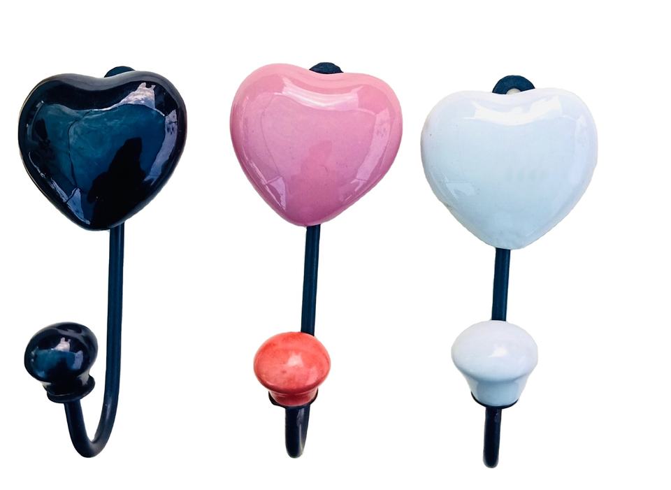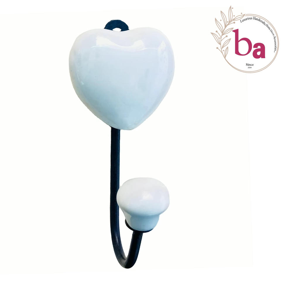 ตะขอเสื้อโค้ทติดผนังกระเบื้องหัวใจเซรามิกสีขาวสินค้าประเภทพรีเมี่ยมที่ทำด้วยมือ