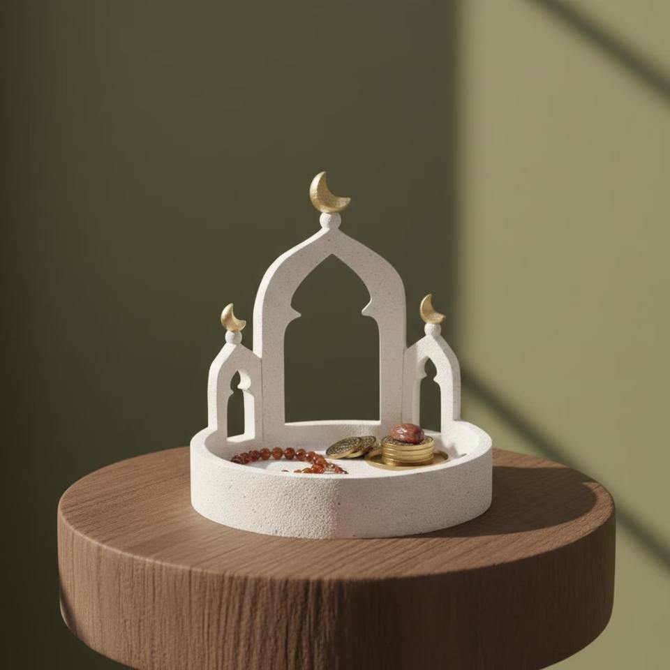 ถาดเซรามิกสีขาวพรีเมียม เหมาะสำหรับเสิร์ฟขนมและของหวานในช่วงรอมฎอนและอีด ใช้ตกแต่งบ้านได้ นำเข้าจากอินเดีย