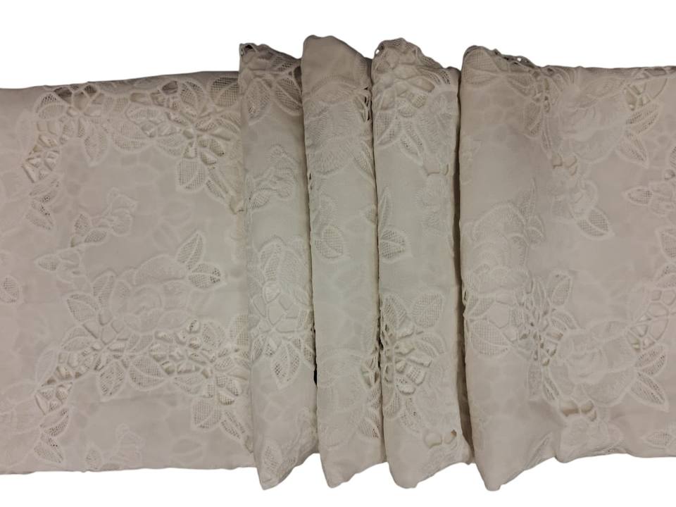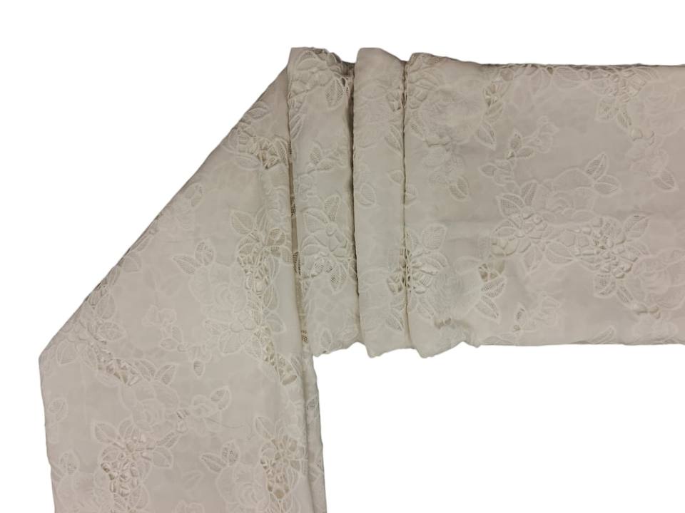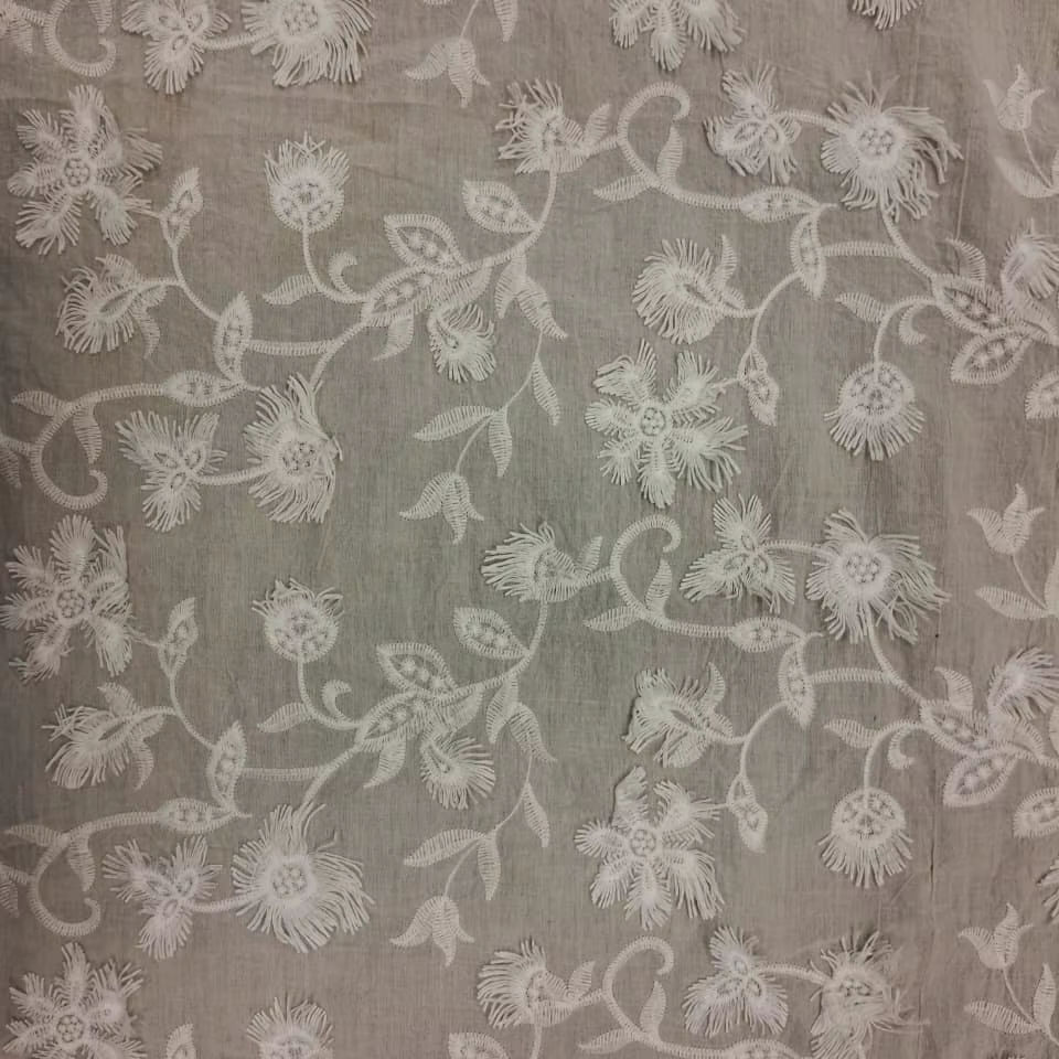 ชนิด:White Cotton 3D Applique Floral Embroidered Fabric
