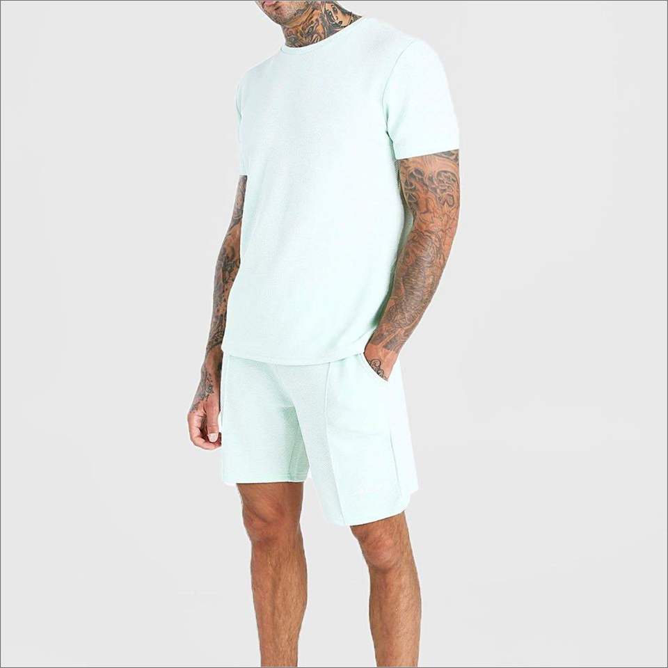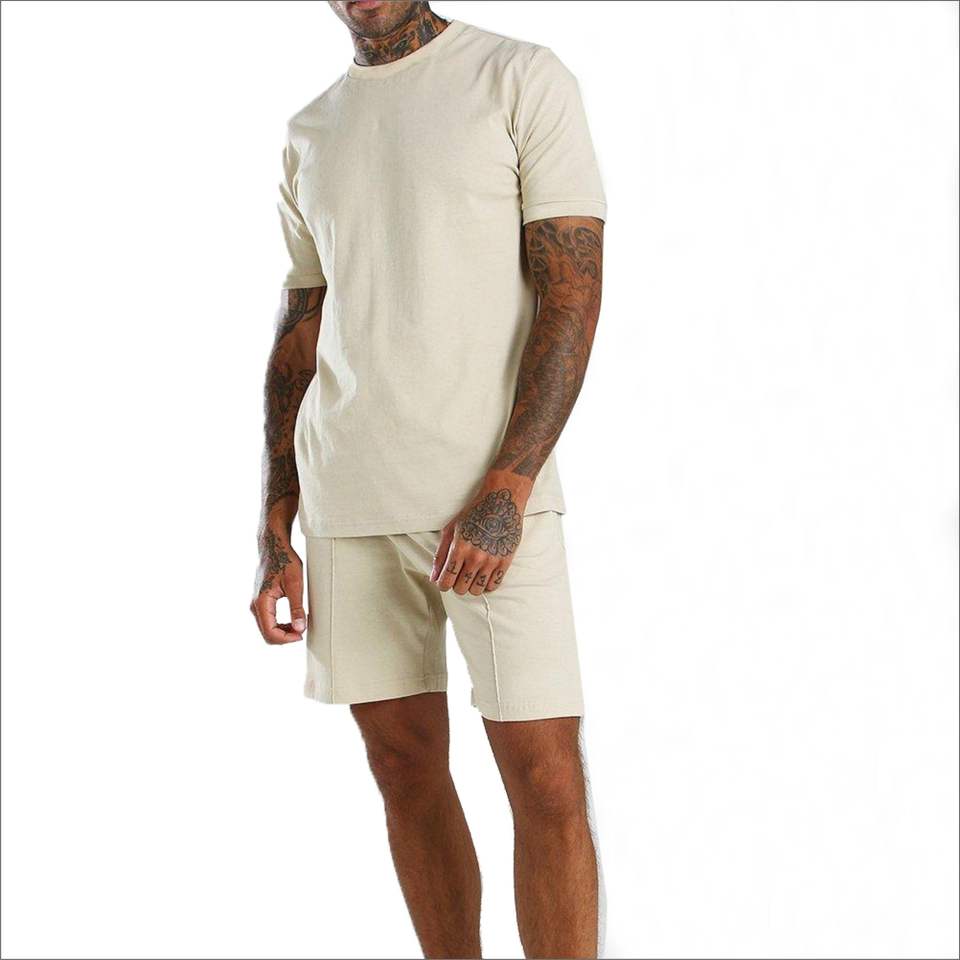Premium White Plain Summer Print Men's 2-Piece T-shirt Shorts Set Oversize Polyester/Cotton Breathable