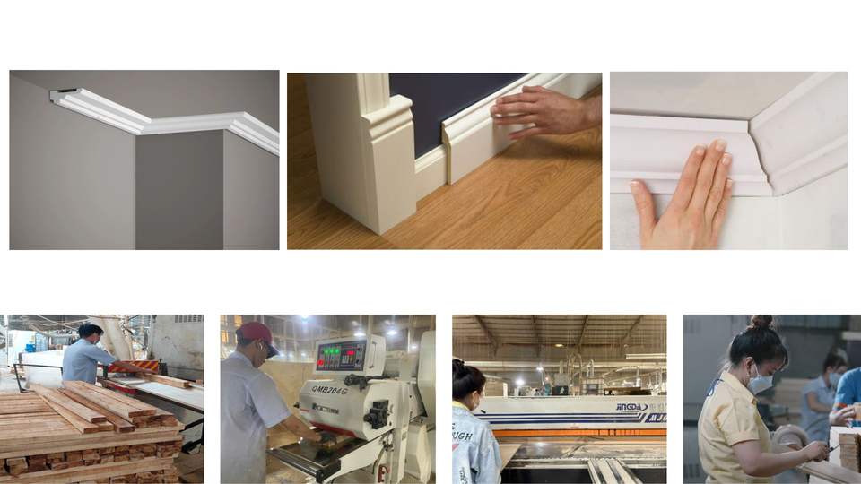 แผ่นไม้หนาสีขาวแบบพรีเมี่ยมสำหรับตกแต่งผนังขอบฐานและติดเพดานการปั้นมงกุฎสำหรับตกแต่งวิลล่า