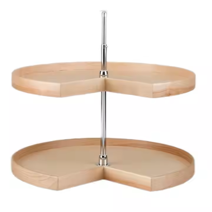 ชั้นวางของหมุนได้รูปไตคู่สีขาวพรีเมียม ทำจากไม้ สำหรับมุมครัว แบบสองชั้น รับผลิตแบบ OEM/ODM