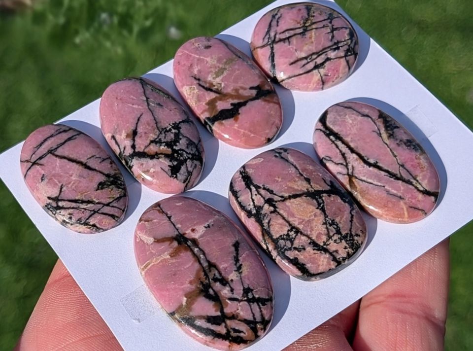 ราคาขายส่งพรีเมียม โรโดไนต์สีชมพูธรรมชาติทรงคาโบชอง ขายส่งแบบคละขนาดและรูปทรง สำหรับทำเครื่องประดับ