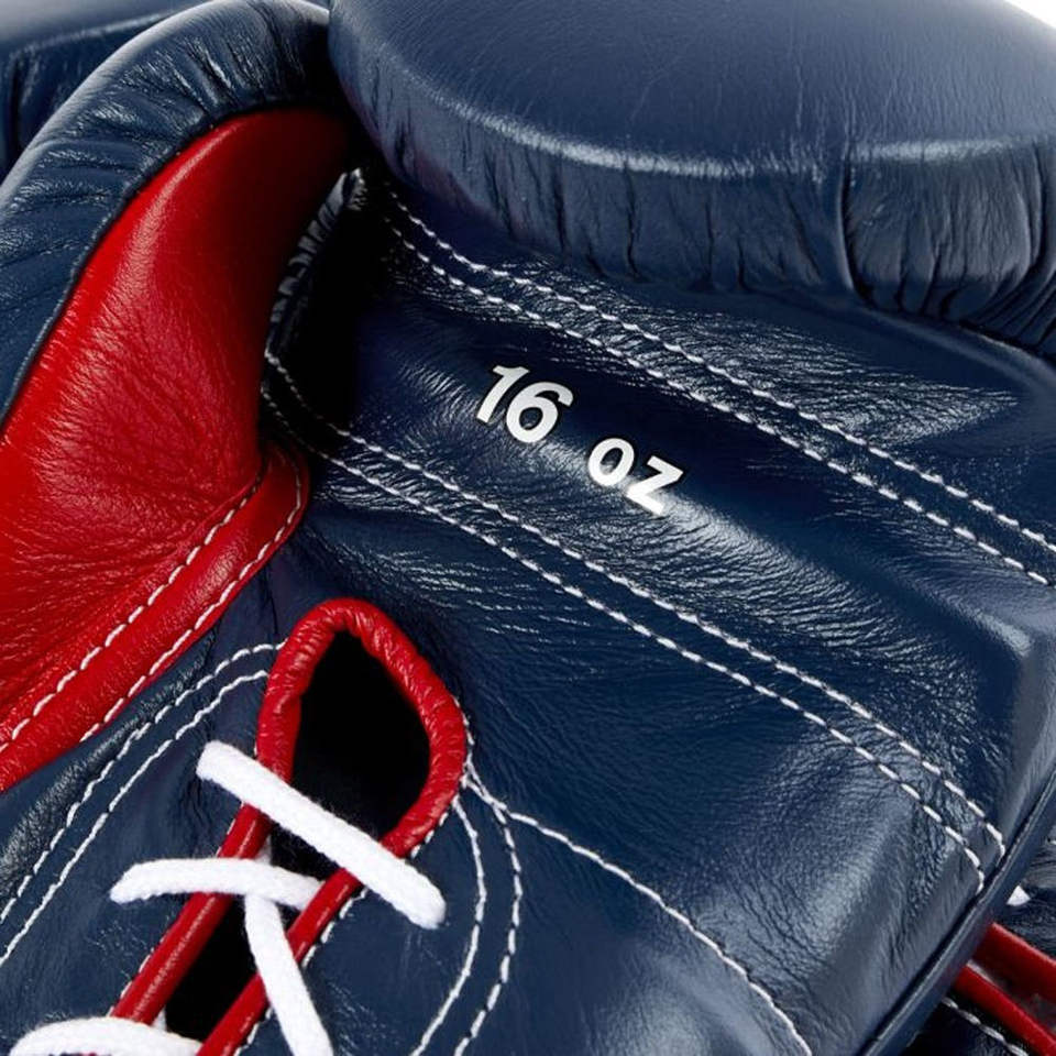 ถุงมือชกมวยคุณภาพพรีเมียม หนังแท้ สำหรับฝึกซ้อมและแข่งขันระดับมืออาชีพ แบบผูกเชือก มีหลายขนาด
