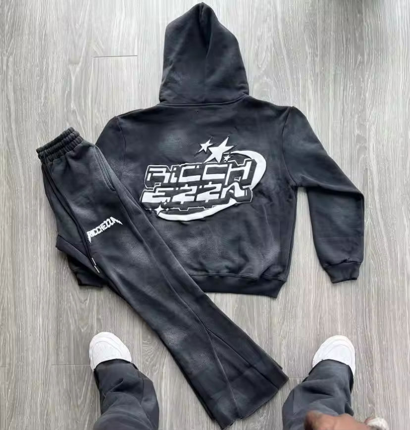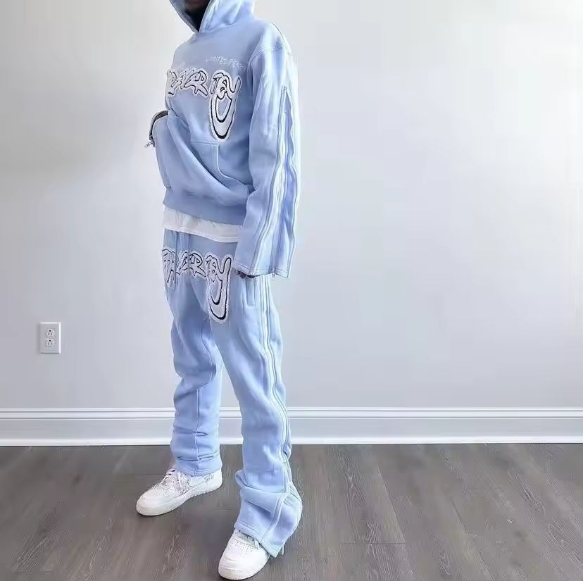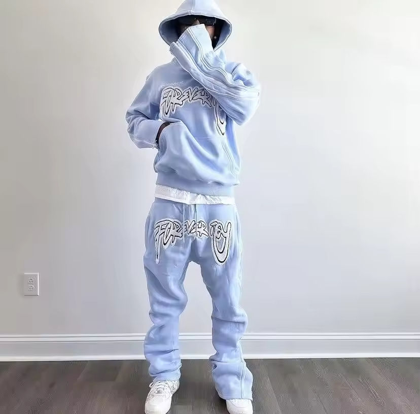 ชุดวอร์มลำลองผู้ชายพรีเมียมสำหรับฤดูหนาว เสื้อฮู้ดซิป กางเกงจ็อกเกอร์ สีพื้น ลวดลายพิมพ์แบบย้อมสีเอซิด ผ้าฝ้าย 100% ไร้ตะเข็บ