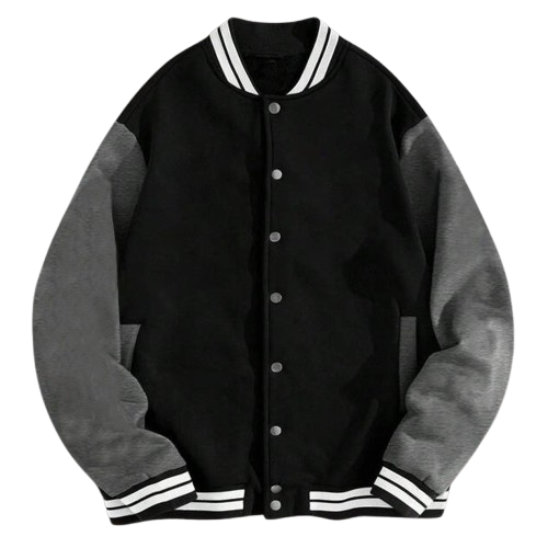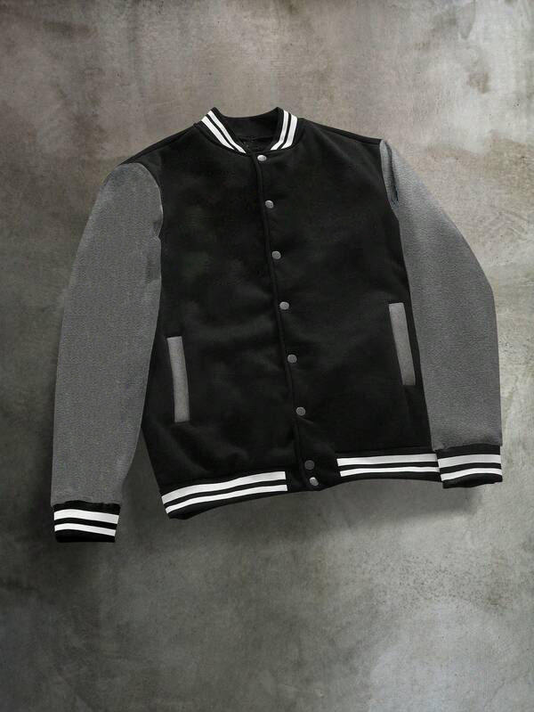 แจ็กเก็ตแบบคลาสสิกบุสองชั้นสำหรับฤดูหนาวผ้าฝ้ายสีดำ100% สีเทาแขนเสื้อลายทาง