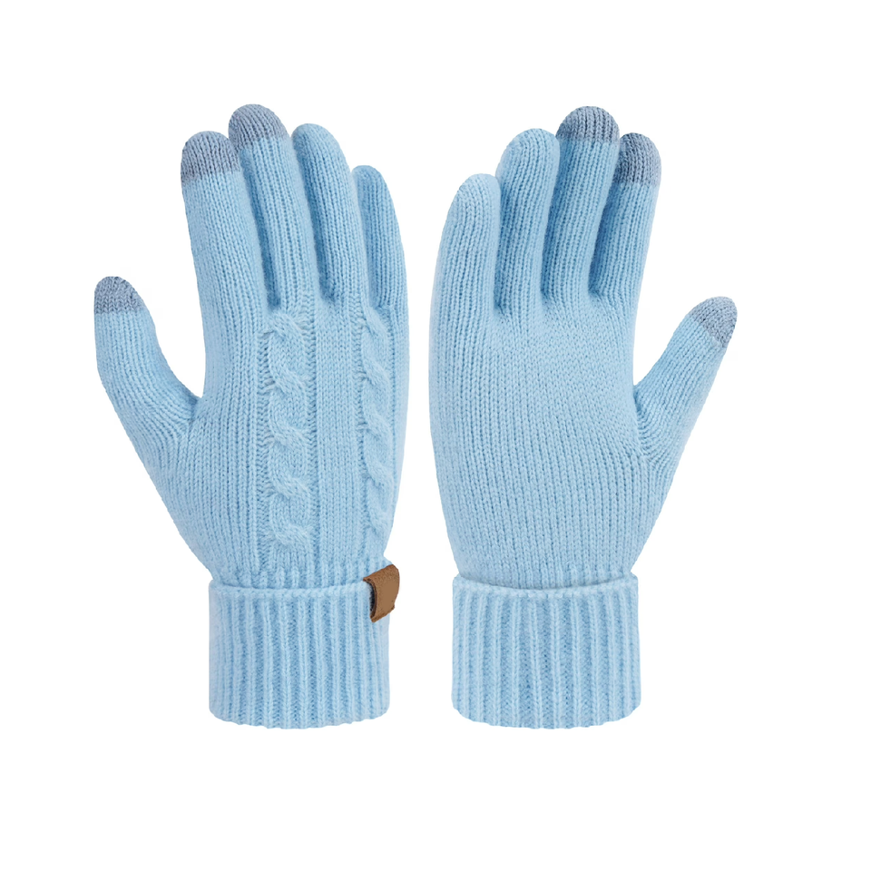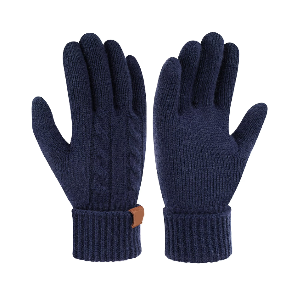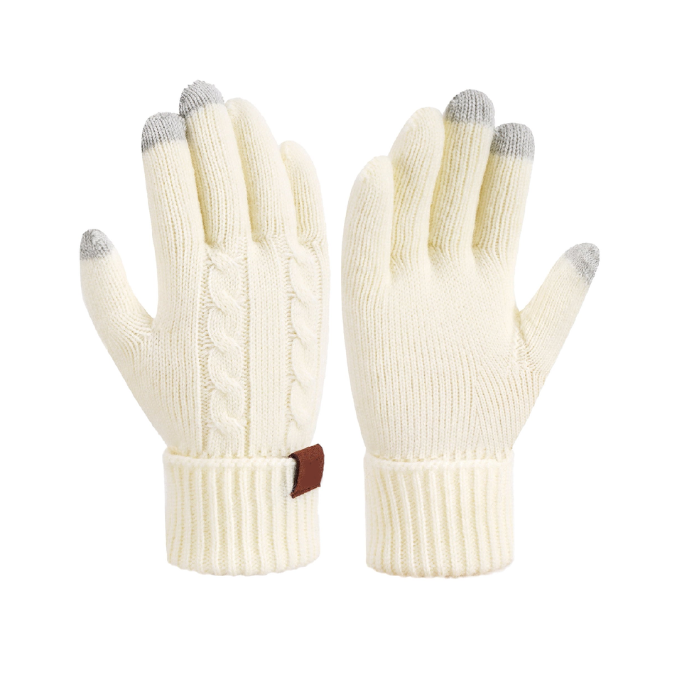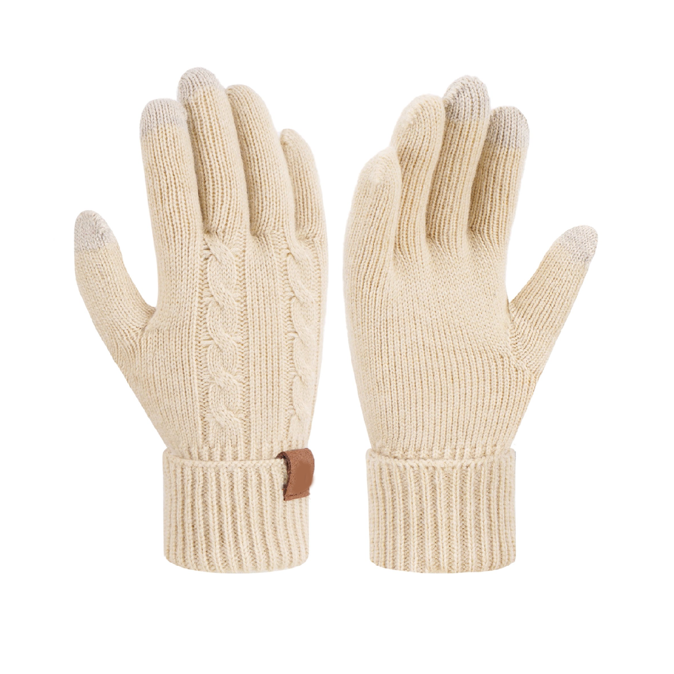 ถุงมือผ้าขนสัตว์100% แบบถักเต็มนิ้วสำหรับฤดูหนาวถุงมืออเนกประสงค์สำหรับตรวจจับเข็มสัมผัสสีขนาดทึบ
