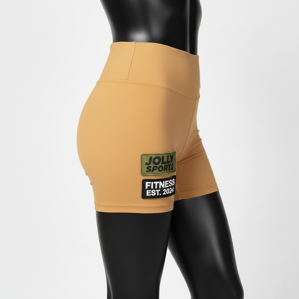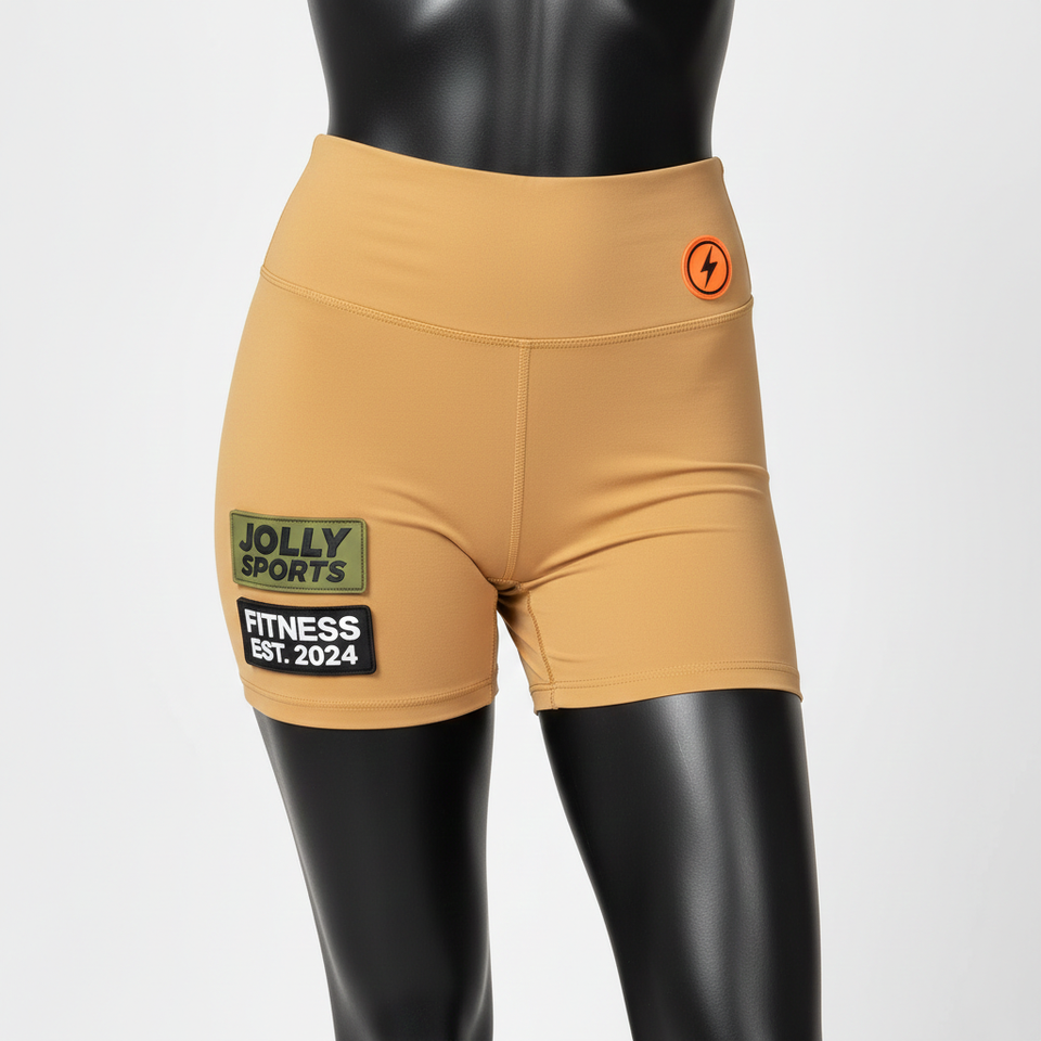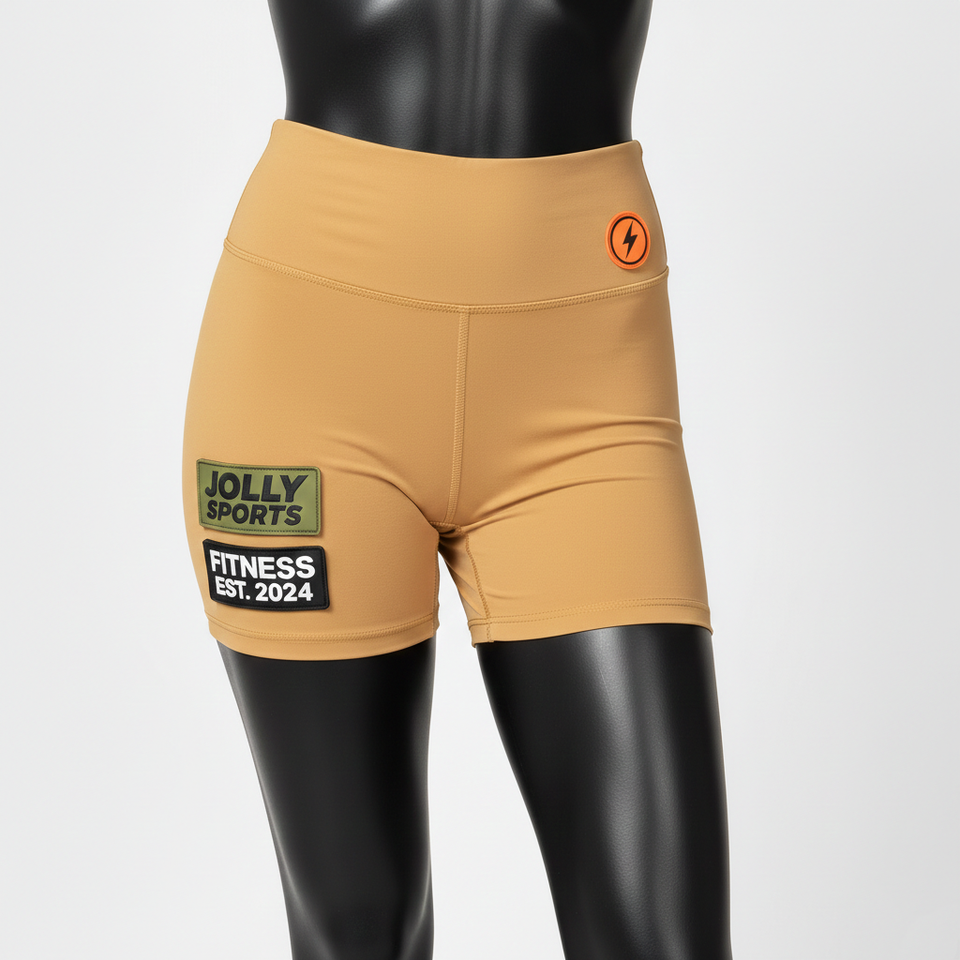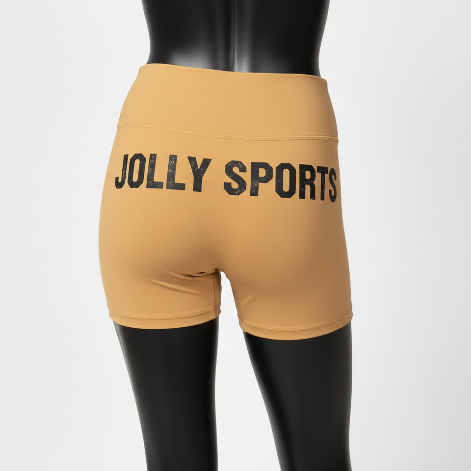 Premium Women Booty Shorts GSM Polyester Spandex Smooth Fabric Camel Beige High Waist Heat Transfer Logo Booty shorts for women