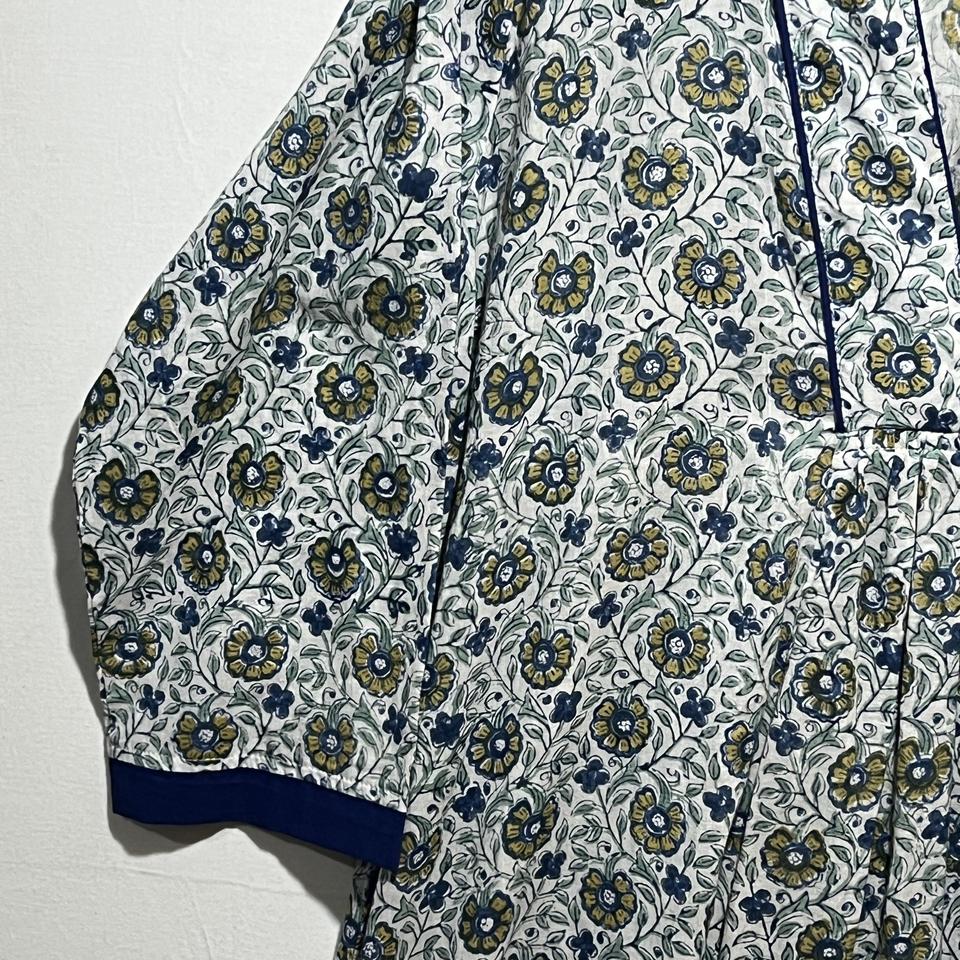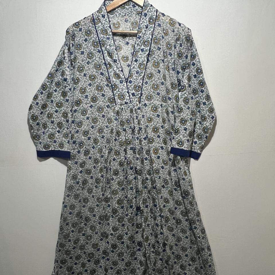 เดรสยาวพิมพ์ลายดอกไม้หลากสีผ้าฝ้ายพรีเมียมสำหรับผู้หญิง คอวี แขนสามส่วน สไตล์ชาติพันธุ์ ดีไซน์เนอร์คุรตี