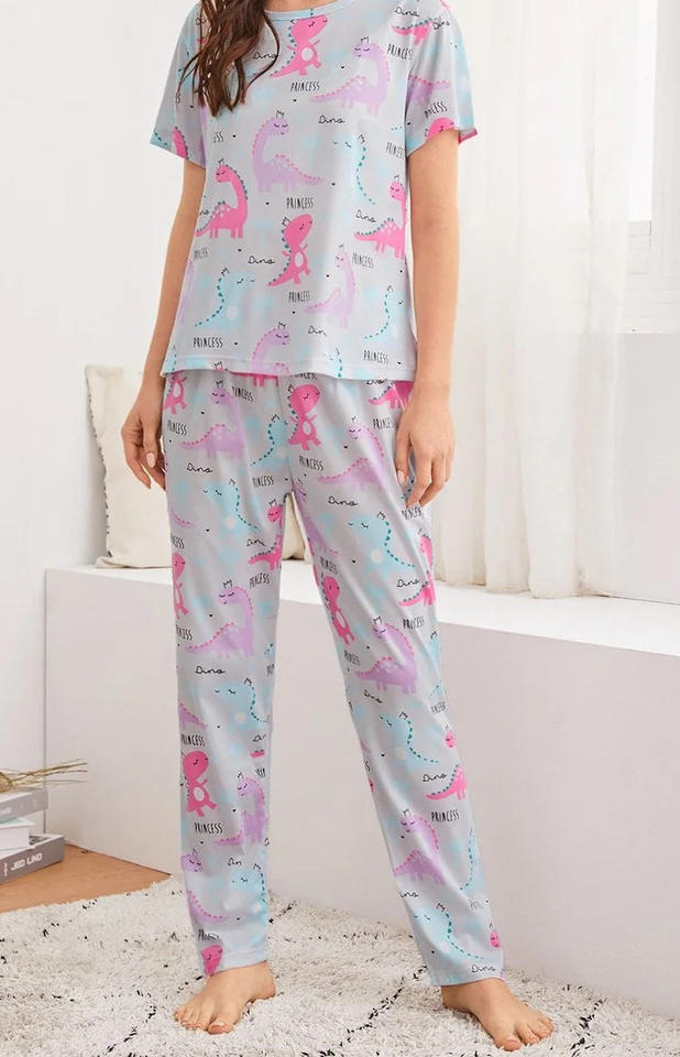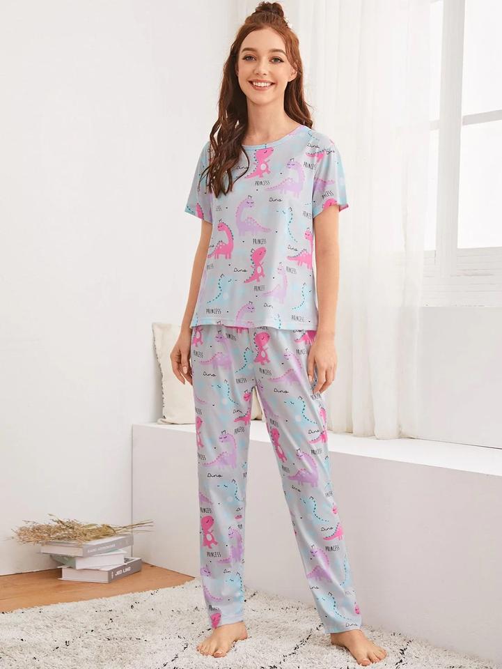 ชุดนอนผ้าไหมผ้าโพลีเอสเตอร์สำหรับผู้หญิงชุดนอนเสื้อพิมพ์ลายการ์ตูนกำหนดได้เอง
