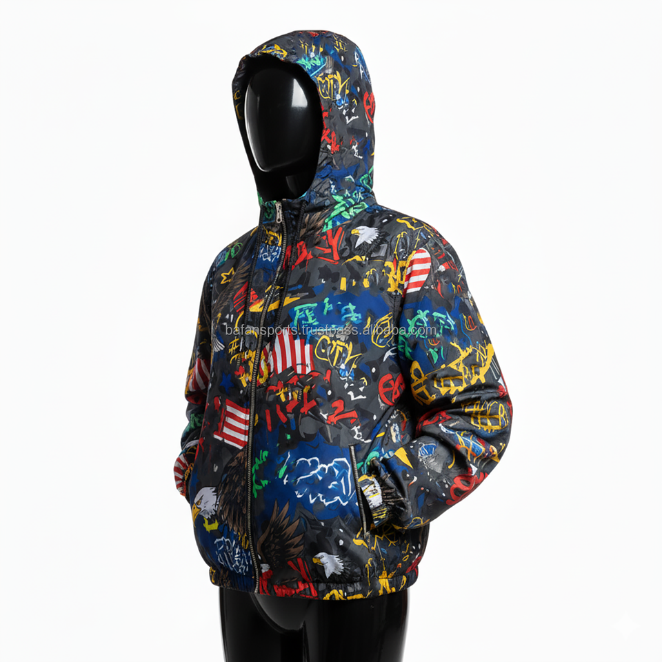 แจ็กเก็ตกันลมสำหรับผู้หญิงแจ็กเก็ตกันลม150 GSM น้ำหนักเบาพิมพ์ลายทั่วโลโก้ออกแบบได้ตามต้องการ