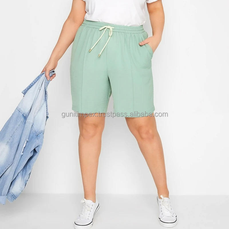 กางเกงขาสั้นผ้าฝ้าย100% พรีเมี่ยมสำหรับผู้หญิงกางเกงขาสั้นเอวสูงแบบลำลองระบายอากาศได้ดีดีไซน์ธรรมดาพร้อมโบว์ขนสัตว์ตกแต่งอย่างมีสไตล์ปรับแต่งได้