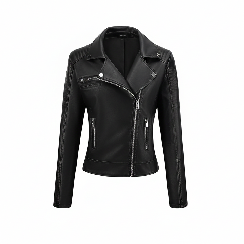 แจ็คเก็ตมอเตอร์ไซค์สั้นสำหรับผู้หญิง หนังเทียมสีดำ ระบายอากาศได้ดี สไตล์ลำลอง พรีเมียม แบบสั่งทำพิเศษ (OEM) ปิดซิป ตกแต่งด้วยขนสัตว์ทอ