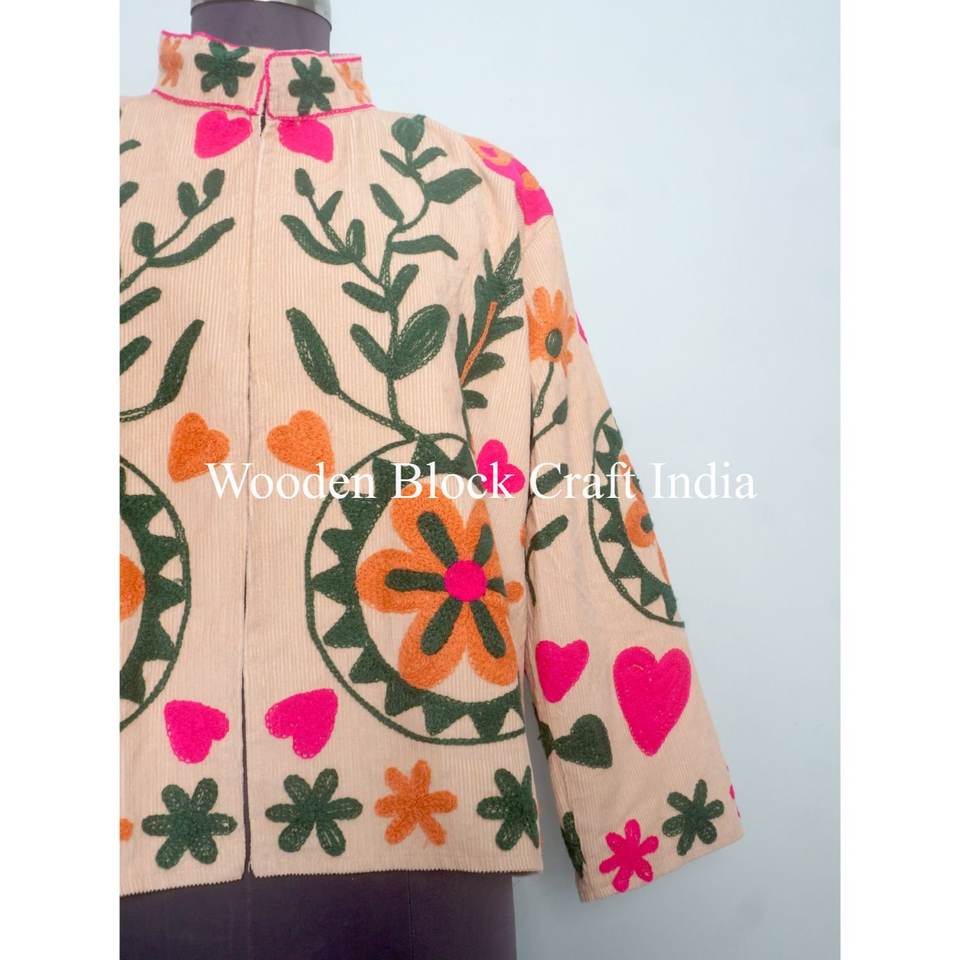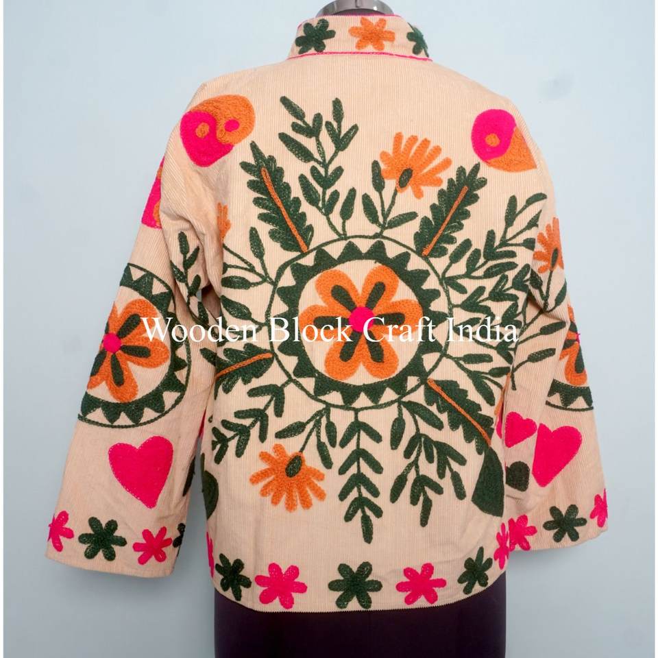 เสื้อแจ็คเก็ตฤดูหนาวสไตล์โบฮีเมียนสำหรับผู้หญิง งานฝีมือปักลายดอกไม้ ผ้าสีครีมนุ่ม งานเย็บปักถักร้อยหลากสีสันลายดอกไม้