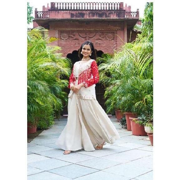 ชุดค็อติปาลาซโซสำหรับผู้หญิงระดับพรีเมียม ผลิตจากผ้าคอสมอสซิมาร์แท้ พร้อมงานปักดิ้นหนักแบบดีไซเนอร์ แต่งด้วยลูกปัดแบบลาต์กัน และเย็บติดกันอย่างสมบูรณ์