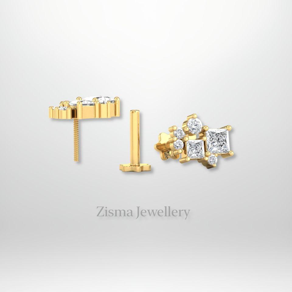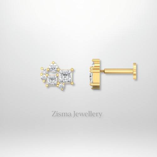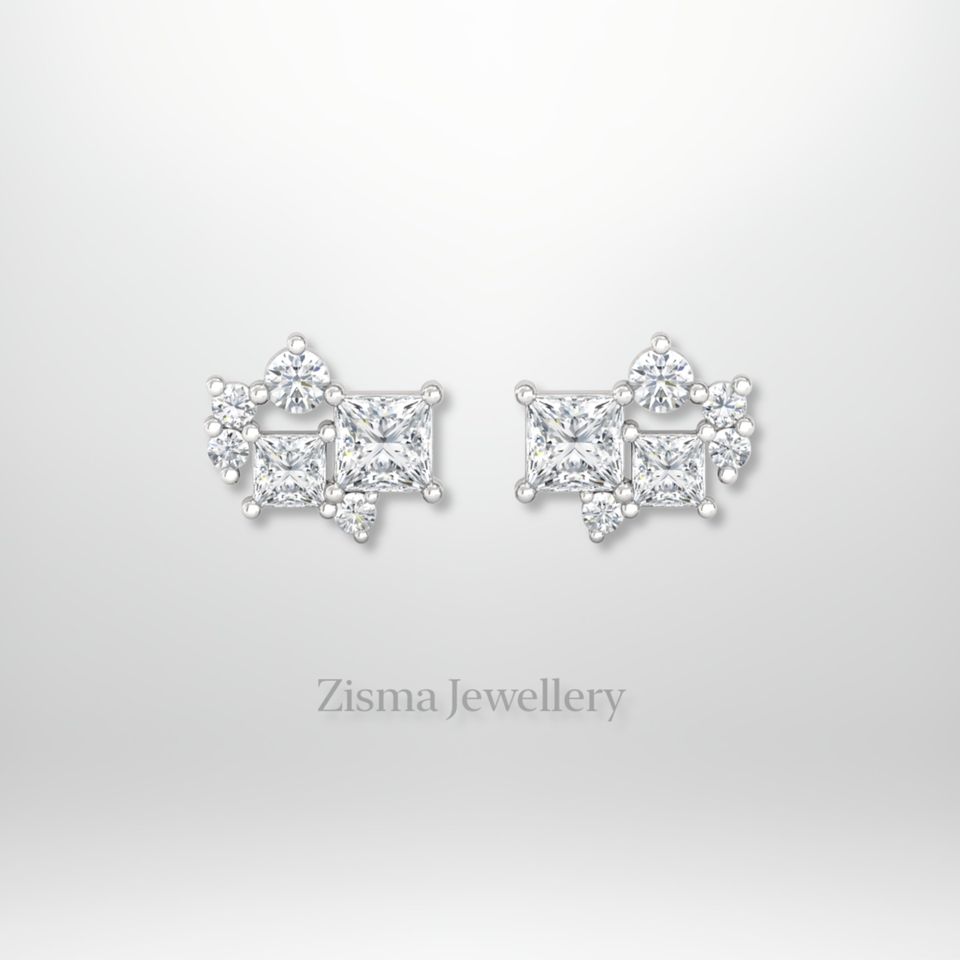 ต่างหูเพชรทรงกลุ่มแบบเจ้าหญิงสำหรับผู้หญิง ระดับพรีเมียม ทองคำแท้ 14K ทรงบริลเลียนต์คัท สีเหลือง/ขาว รับรองโดย IGI ขายส่ง