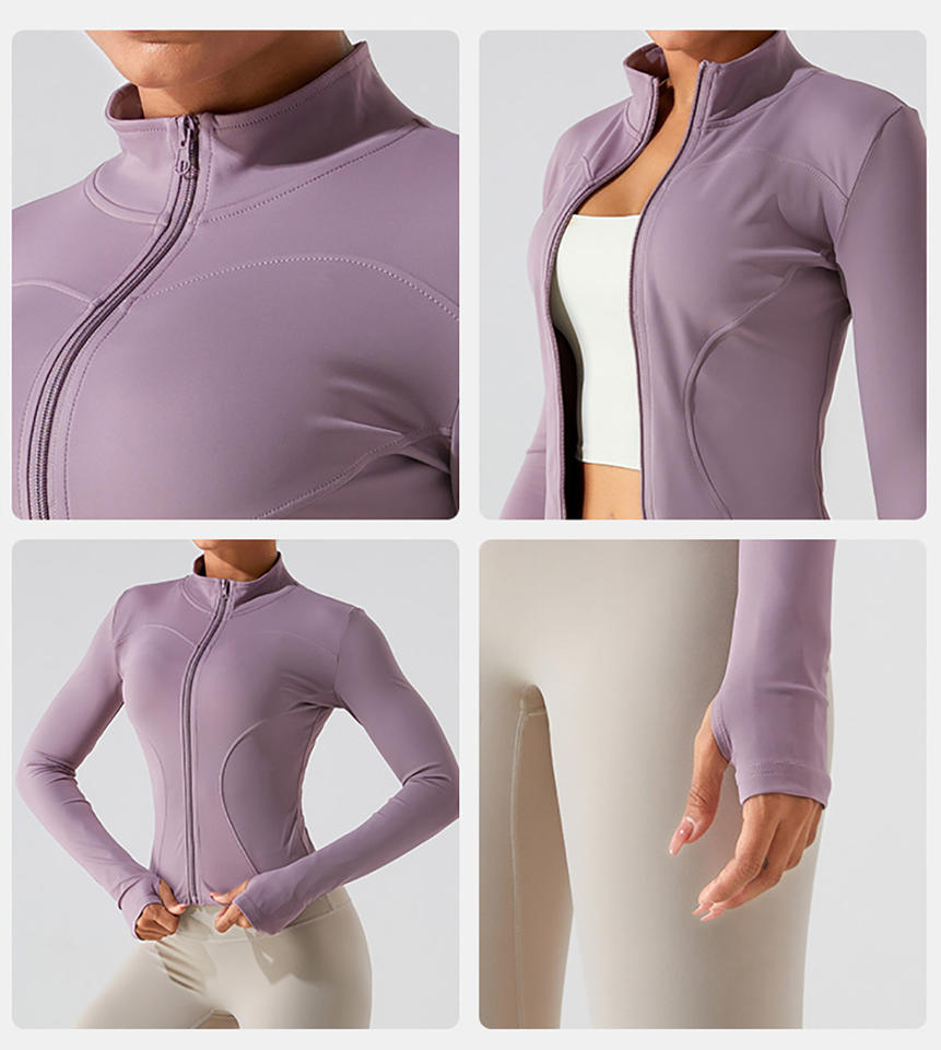 เสื้อแจ็คเก็ตกีฬาของผู้หญิงแบบรูดซิปน้ำหนักเบาแห้งเร็วเสื้อโค้ทสำหรับออกกำลังกาย
