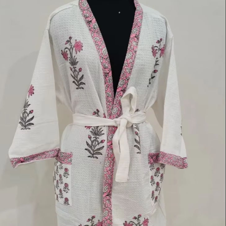 ชุดกิโมโนพิมพ์ลายดอกไม้สำหรับผู้หญิง, ชุดคลุมอาบน้ำผ้าฝ้ายสีขาวสำหรับงานปาร์ตี้พร้อมสำหรับฤดูใบไม้ผลิ