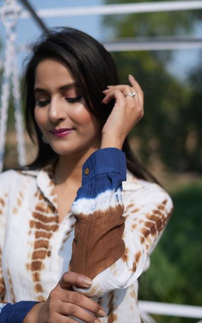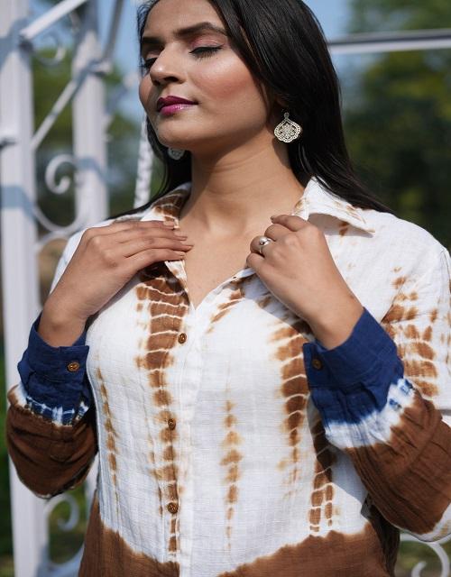 เสื้อมัดย้อมผ้าฝ้ายของผู้หญิงแบบพรีเมี่ยมเสื้อแขนยาวแบบติดกระดุมด้านหน้าได้อย่างง่ายดายทันสมัยสำหรับฤดูร้อน