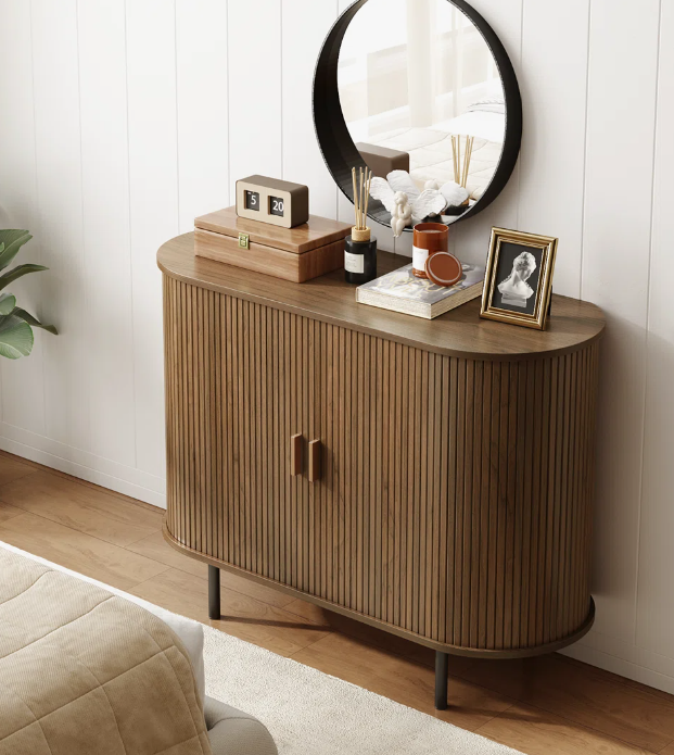ตู้ลิ้นชักไม้พรีเมียม โครงสีน้ำตาลหรูหรา ด้านหน้าลายไม้ธรรมชาติ พื้นที่จัดเก็บกว้างขวาง เหมาะสำหรับห้องนั่งเล่นและห้องนอน