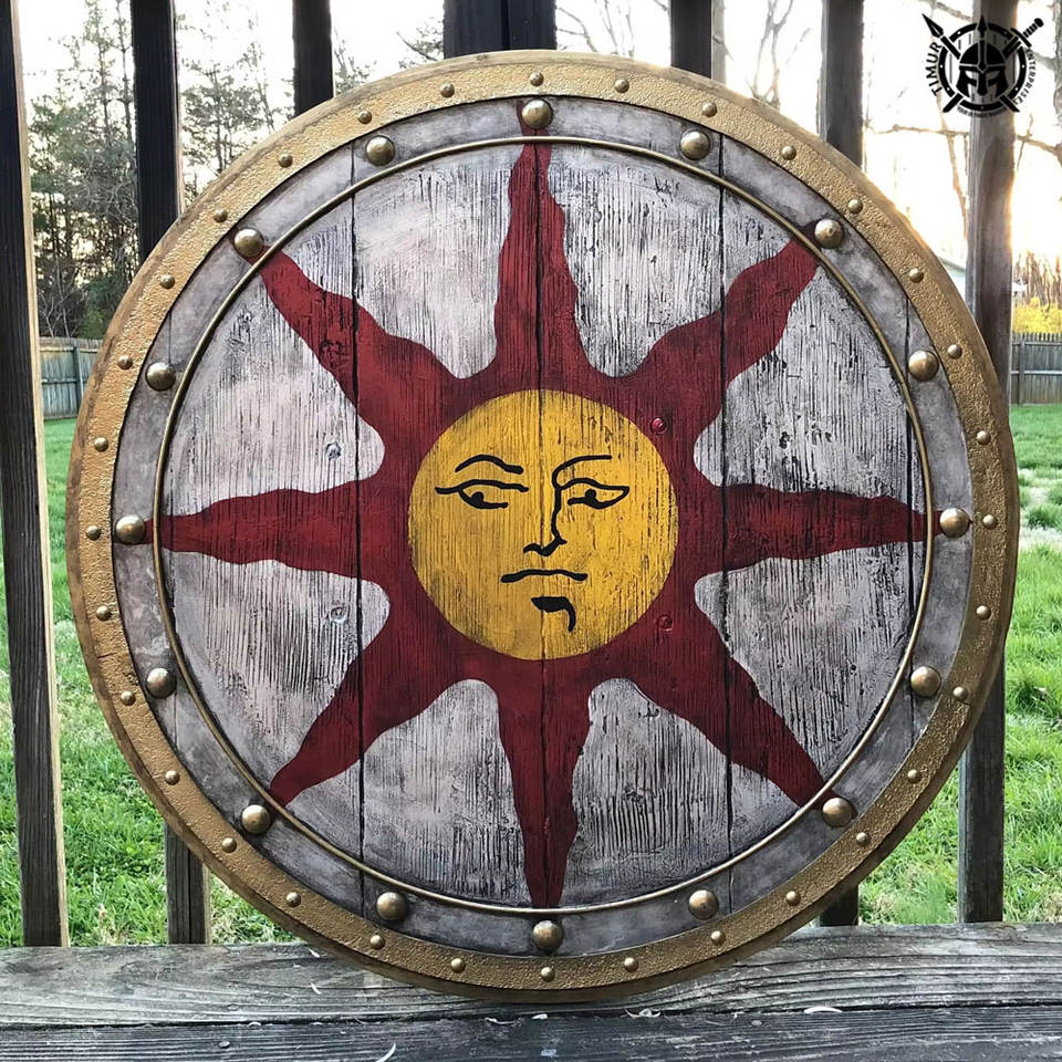 โล่ไวกิ้งไม้และเหล็กพรีเมี่ยมพร้อมใบมีดคู่หัวขวานออกแบบโลโก้ด้วยมือแกะสลักขนาดปรับแต่งได้สำหรับการตั้งแคมป์กลางแจ้ง