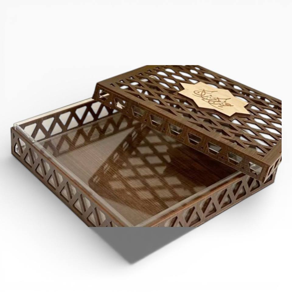 กล่องช็อกโกแลตอะคริลิคไม้พรีเมียมพร้อมลายอักษรอาหรับ กล่องเก็บขนมสุดหรูสำหรับตกแต่งบ้าน