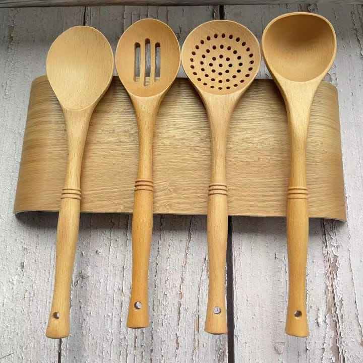 ชุดช้อนส้อมสแตนเลสพร้อมด้ามจับไม้แบบพรีเมียม 4 ชิ้น ด้ามจับไม้ฐานกว้างตามหลักสรีรศาสตร์