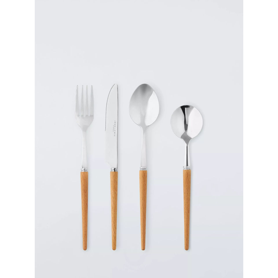 ชุดช้อนส้อมสแตนเลสพร้อมด้ามไม้พรีเมียม ดีไซน์ทันสมัยเคลือบด้าน สำหรับใช้ในบ้านและโรงแรม