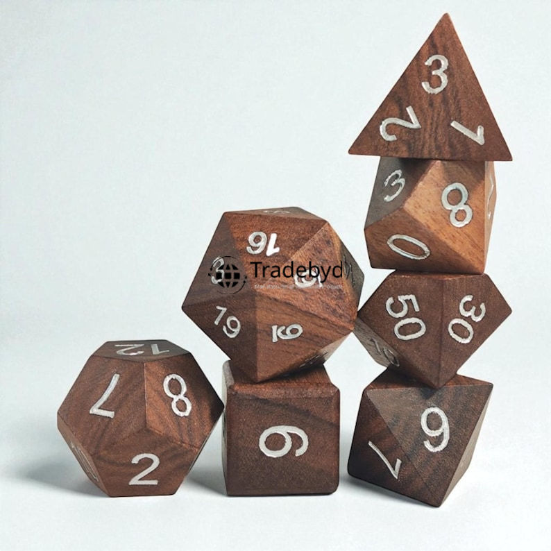 ชุดลูกเต๋าไม้พรีเมียม 7 ชิ้น ทนทาน เป็นมิตรกับสิ่งแวดล้อม สำหรับเกมกระดาน RPG นักสะสม Tradebyd