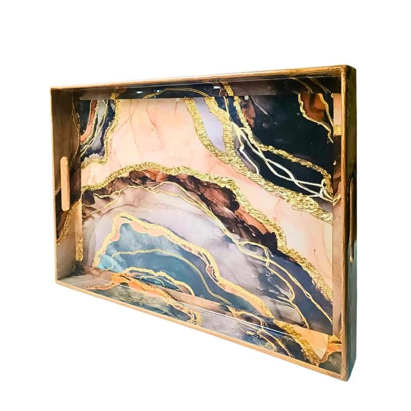ถาดเสิร์ฟไม้พรีเมียม MDF เรซิ่น ถาดชา กาแฟ ถาดเสิร์ฟอเนกประสงค์ตกแต่ง