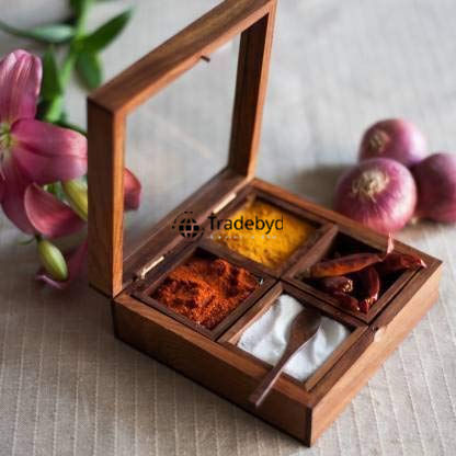 กล่องเครื่องเทศไม้พรีเมี่ยมพร้อมช่องสำหรับเก็บเครื่องเทศและสมุนไพรทำด้วยมือ