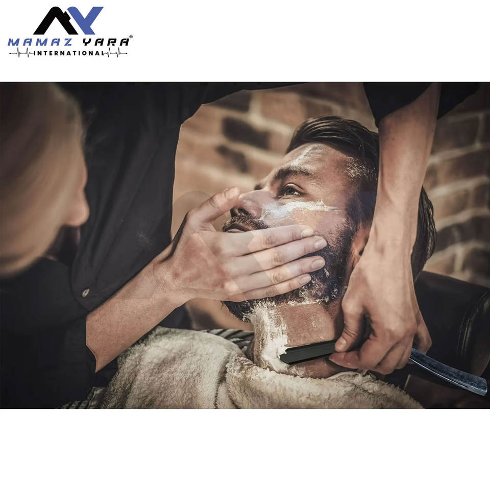 มีดโกนหนวดตรงขอบไม้คุณภาพพรีเมียม สำหรับร้านตัดผมมืออาชีพ ด้ามไม้ พร้อมที่วางสแตนเลส