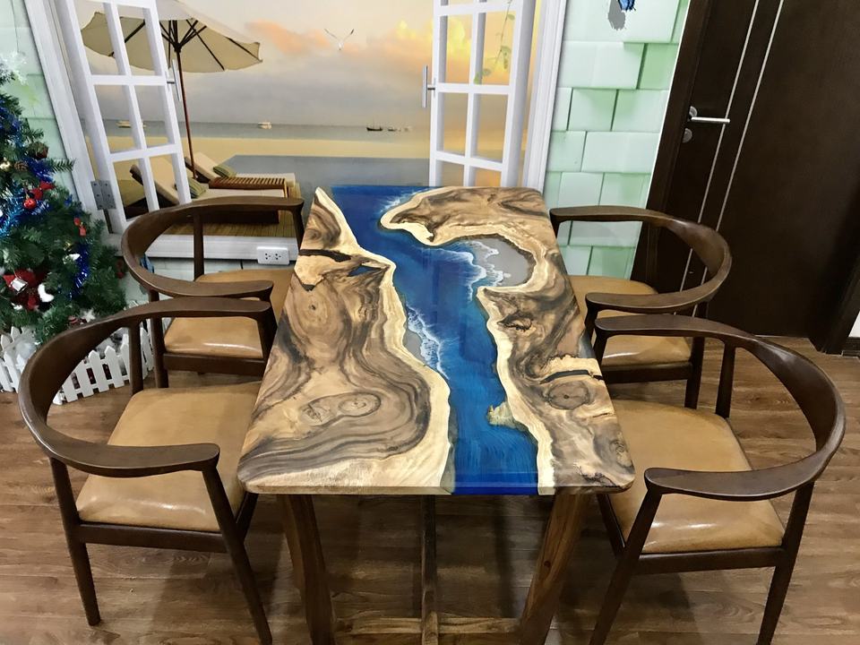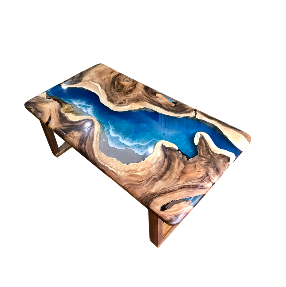 โต๊ะไม้พรีเมียม เรซิ่นอีพ็อกซี่ คุณภาพดีที่สุดสำหรับลูกค้าทุกท่าน เรซิ่นลายแม่น้ำสีฟ้า