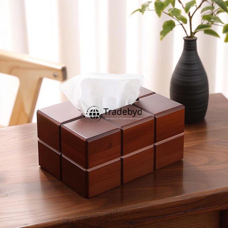 กล่องใส่กระดาษทิชชูไม้ลายดอกไม้แกะสลัก พรีเมียม สไตล์เรียบง่าย ตกแต่งบ้านอย่างมีสไตล์ สำหรับสำนักงาน Tradebyd