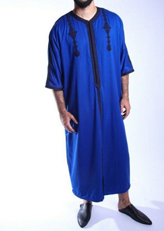 เสื้อผ้ามุสลิมสำหรับผู้ใหญ่ชุดเดรสตกแต่งแบบดั้งเดิมของผู้ชายผ้าลินินงานทำมือแบบชาวโมร็อกโก XXL แบบดั้งเดิม