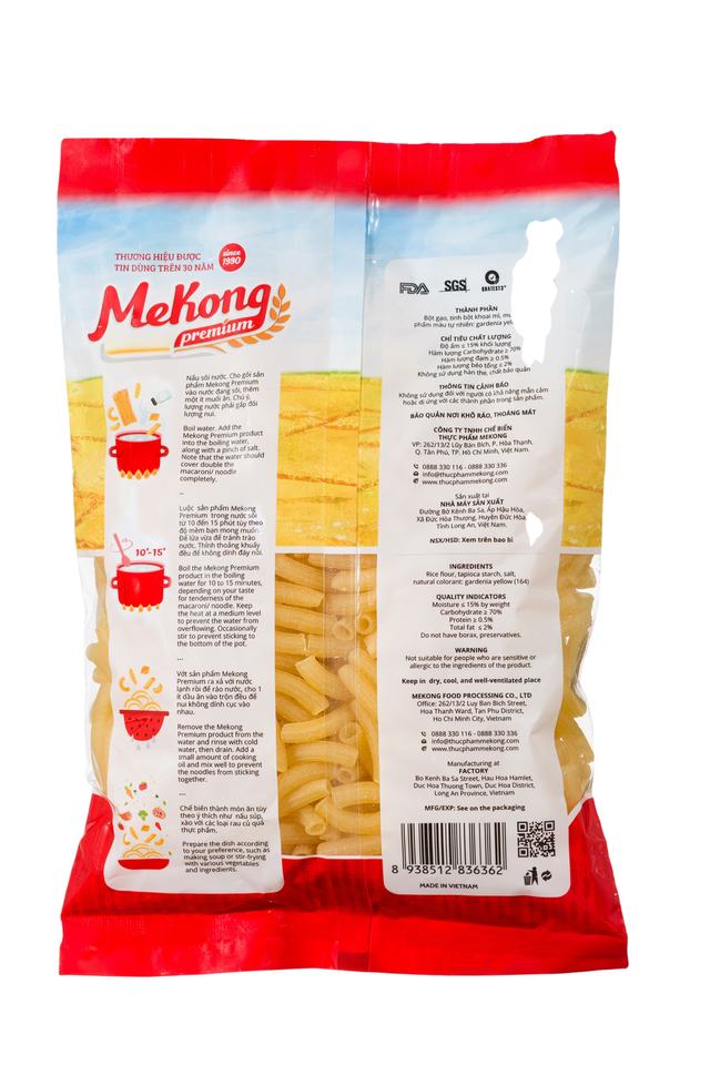 มักกะโรนีข้าวเหนียวสีเหลืองพรีเมียม 400 กรัม ปราศจากกลูเตน โซเดียมต่ำ ไม่มีบอแรกซ์ รับผลิตแบบ OEM ODM จากเวียดนาม