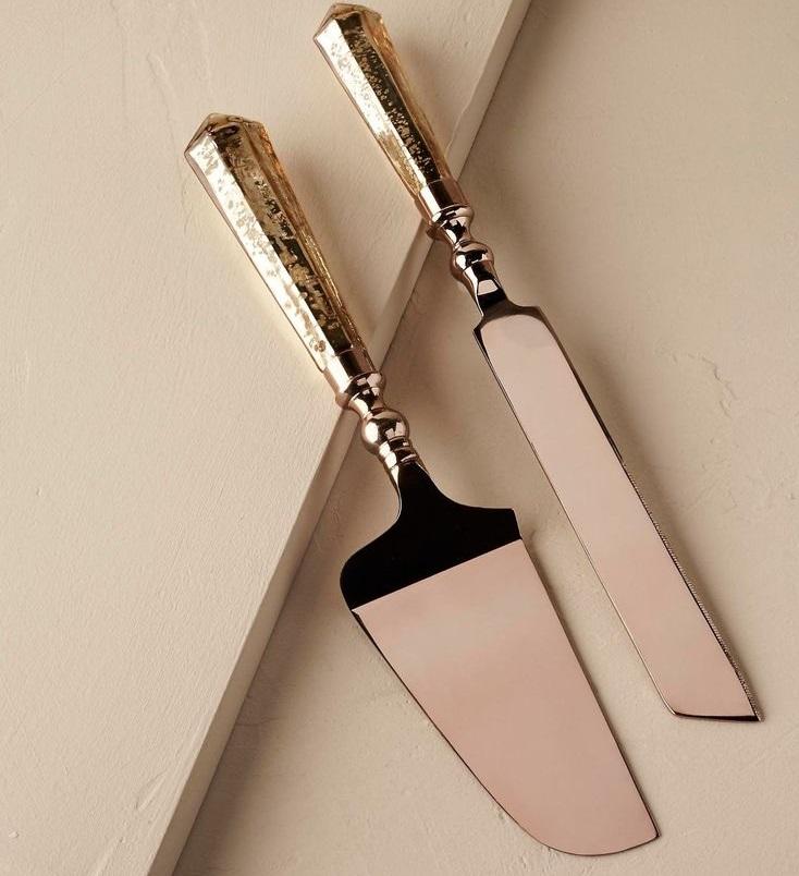 เซิร์ฟเวอร์เค้กโลหะสแตนเลสที่ทำจากช่างฝีมือระดับพรีเมียมพร้อมการตกแต่งที่ประณีตและใบมีดขัดเงาสำหรับรับประทานอาหารระดับไฮเอนด์