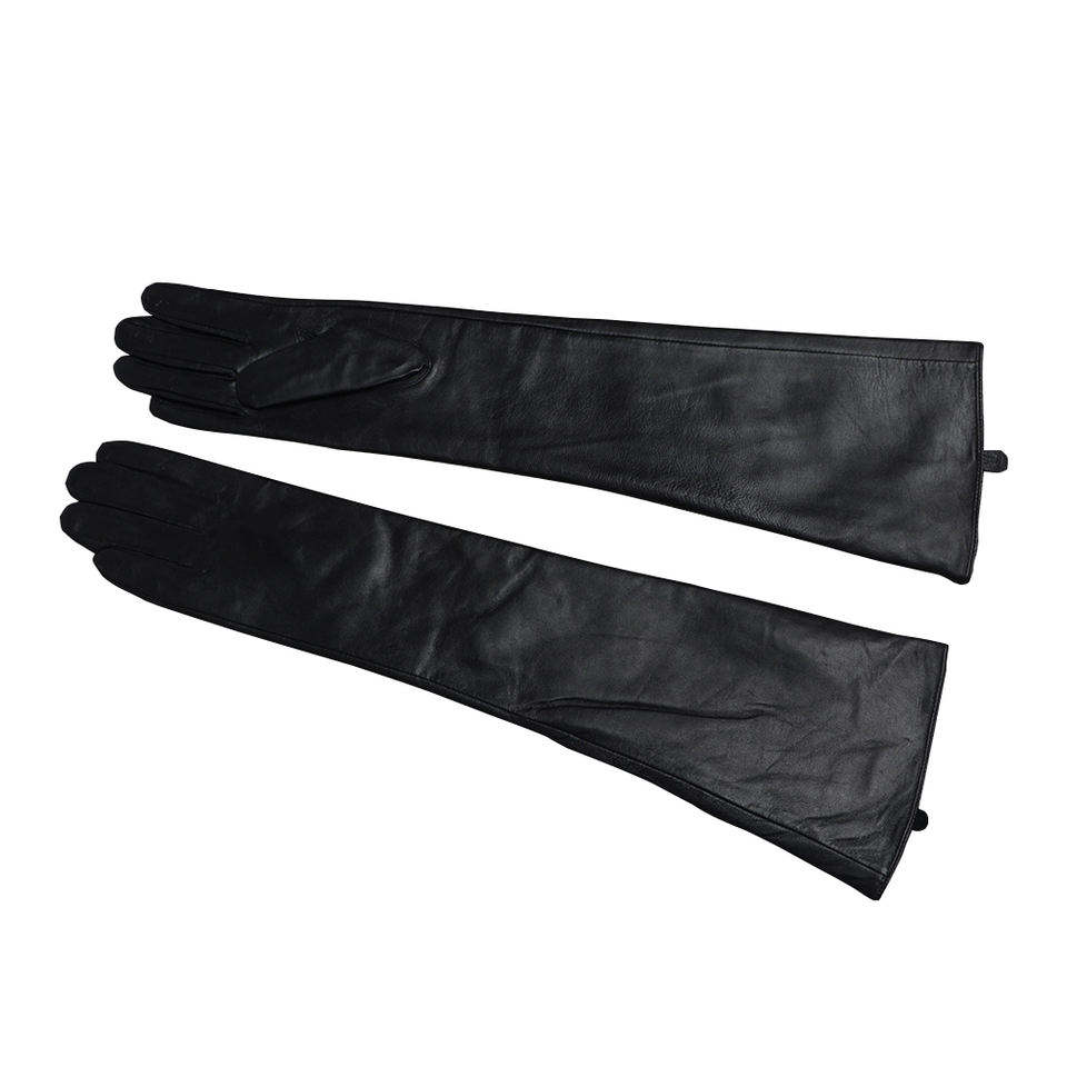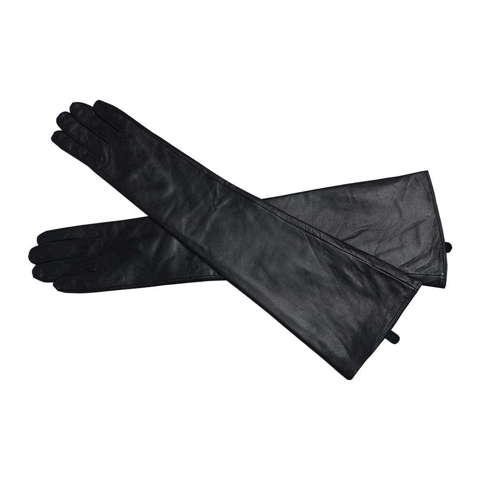 ถุงมือหนังแกะสีดำพรีเมียมสำหรับผู้หญิง ถุงมือเดรสสุดหรูมีสไตล์ ถุงมือแฟชั่นกันหนาวแบบยาวคลุมแขน