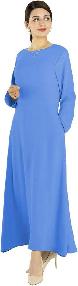 อะบายาสีฟ้าแบบพรีเมี่ยมสำหรับผู้หญิงทรงหลวมสไตล์คลาสสิกแขนยาวเหมาะสำหรับงานทางการหรือสวมใส่ทุกวัน