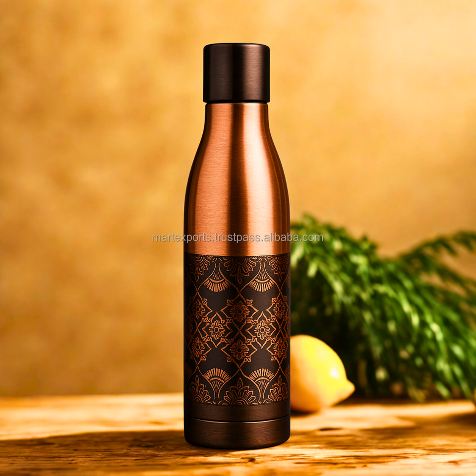 ขวดน้ำดื่มทองแดงพรีเมียม ออกแบบมาเพื่อการใช้งานประจำวัน ได้รับแรงบันดาลใจจากวิถีการดูแลสุขภาพแบบดั้งเดิมและการปฏิบัติแบบอายุรเวท