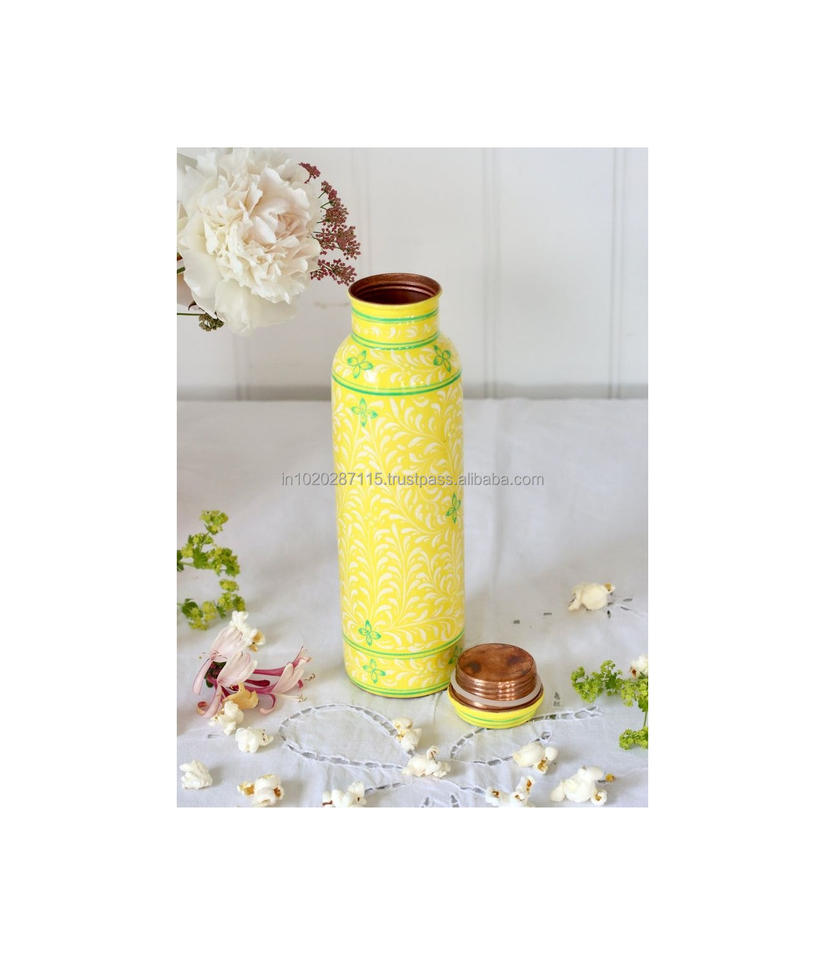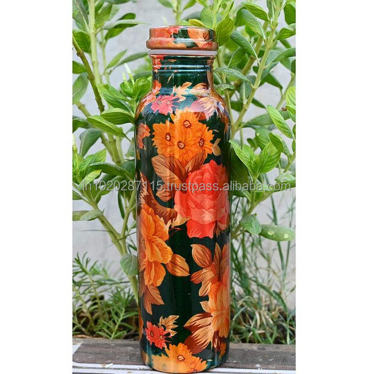ขวดน้ำทองแดงพรีเมี่ยมที่มีพื้นผิวเคลือบดอกไม้และรูปทรงที่ทันสมัยเหมาะสำหรับสุขภาพการเดินทางปกติและการดื่มทุกวัน