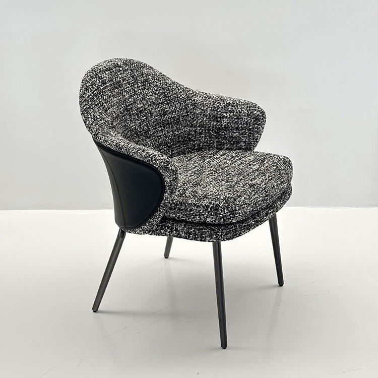 เก้าอี้ทานอาหารผ้าลินินสีเทาเข้มพรีเมียม ขาเหล็กสแตนเลสกันลื่น เหมาะสำหรับห้องอาหารโรงแรมระดับ 5 ดาวและการนั่งเป็นเวลานาน
