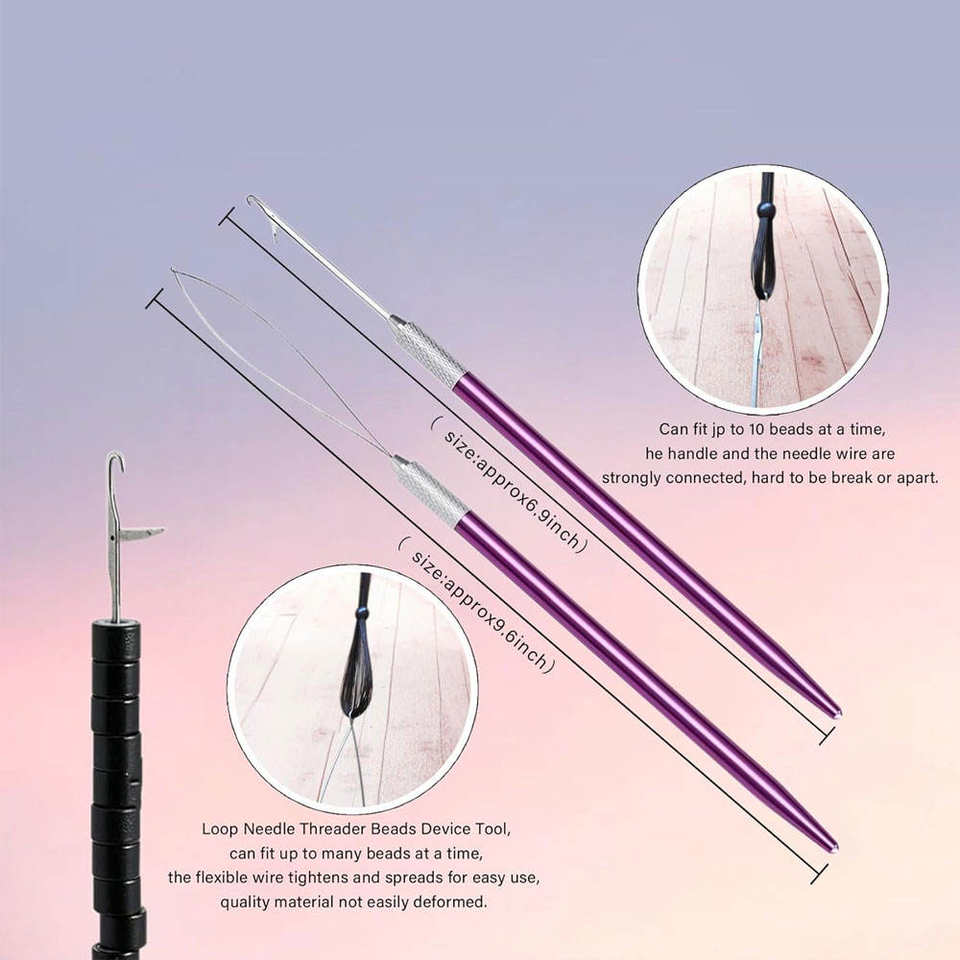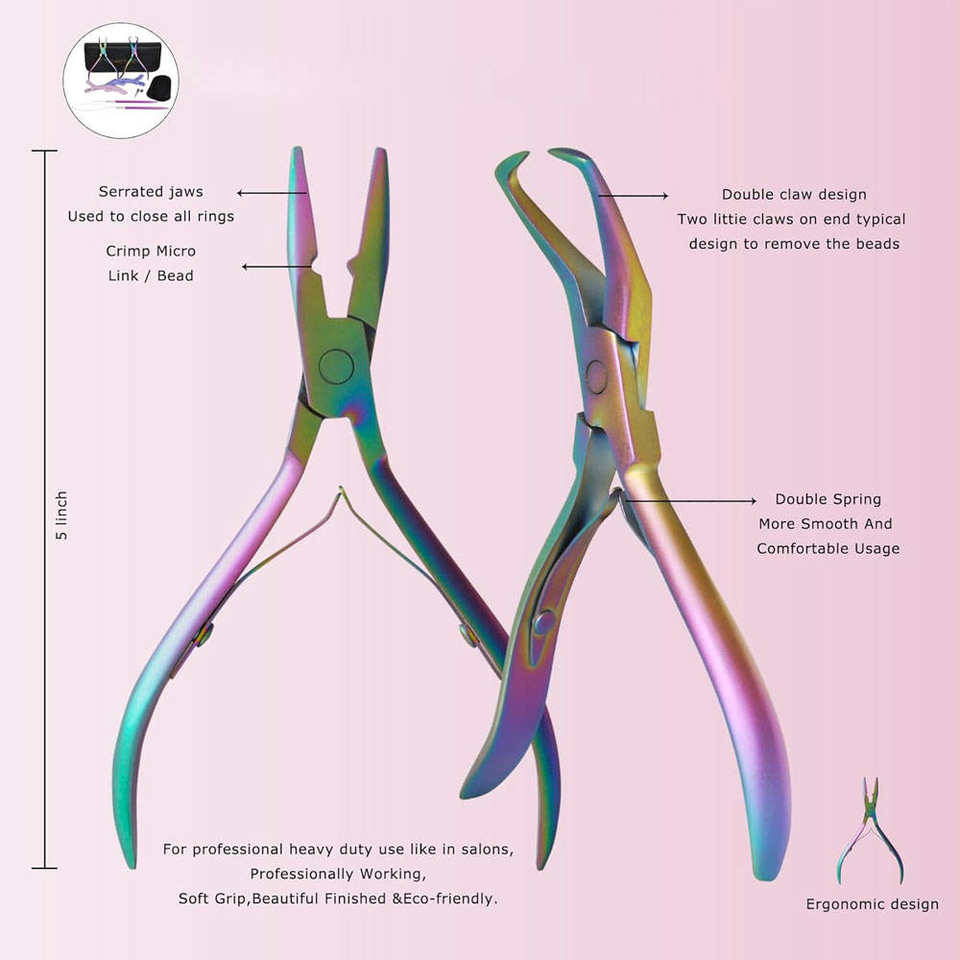 ชุดอุปกรณ์ต่อผมระดับพรีเมียม พร้อมเครื่องมือสำหรับต่อผมแบบไมโครลิงค์ นาโนบีดส์ และขนนก สำหรับงานในร้านเสริมสวย