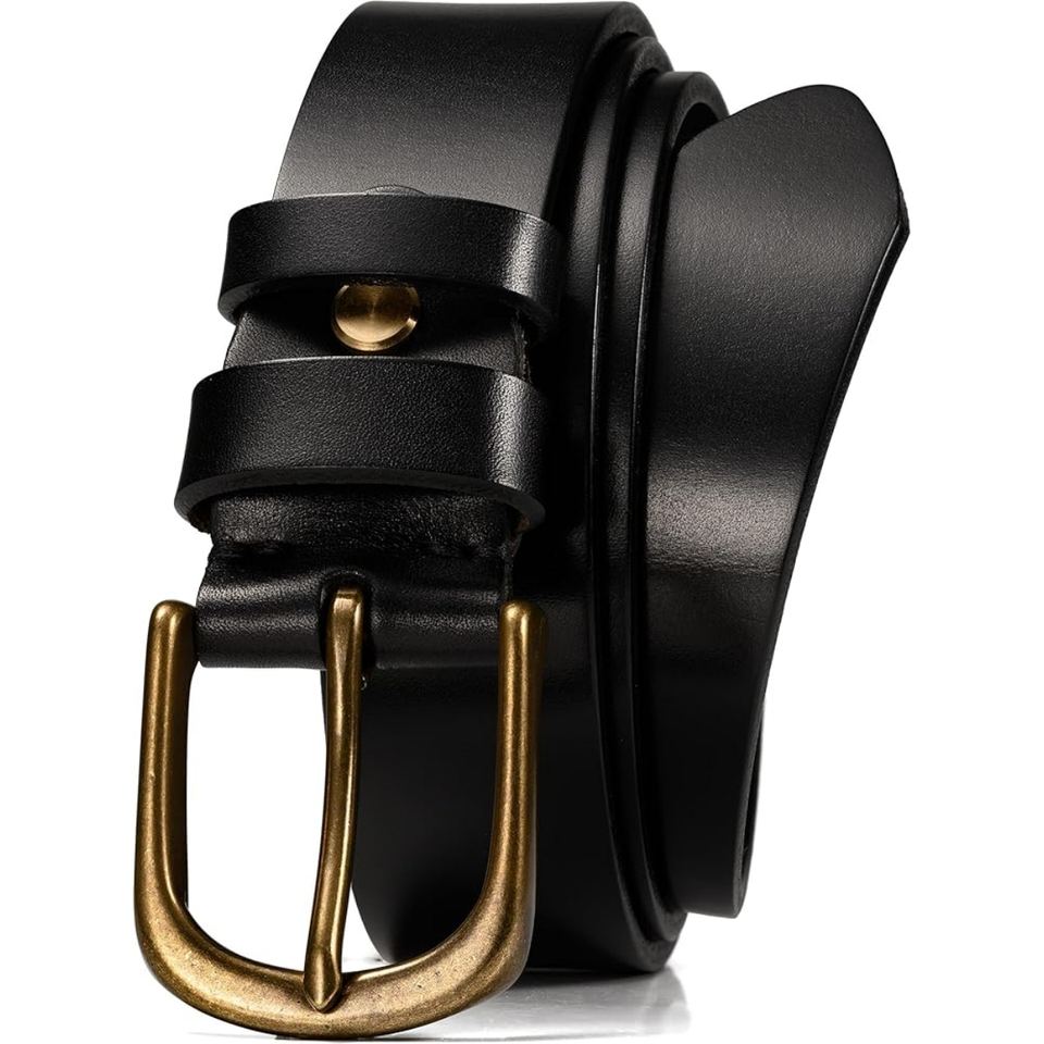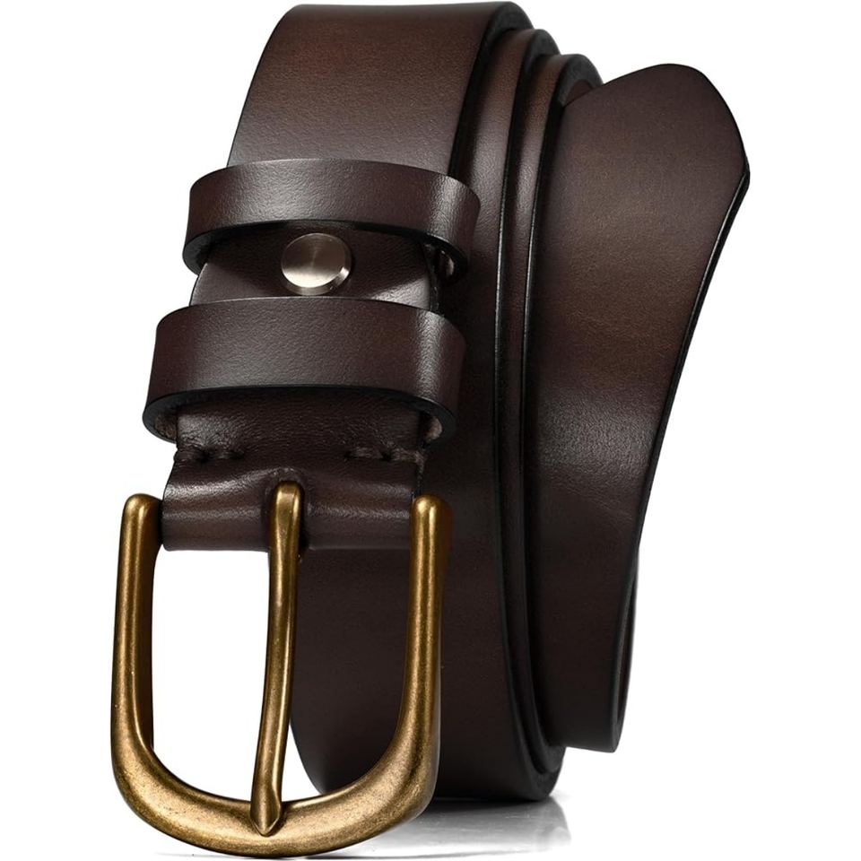 เข็มขัดหนังควายทำมือระดับพรีเมียมสำหรับผู้ชาย สายหนา แข็งแรง หัวเข็มขัดทองเหลืองสไตล์เรโทร ดีไซน์หรูหราทันสมัย