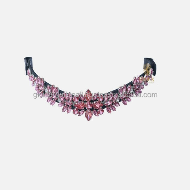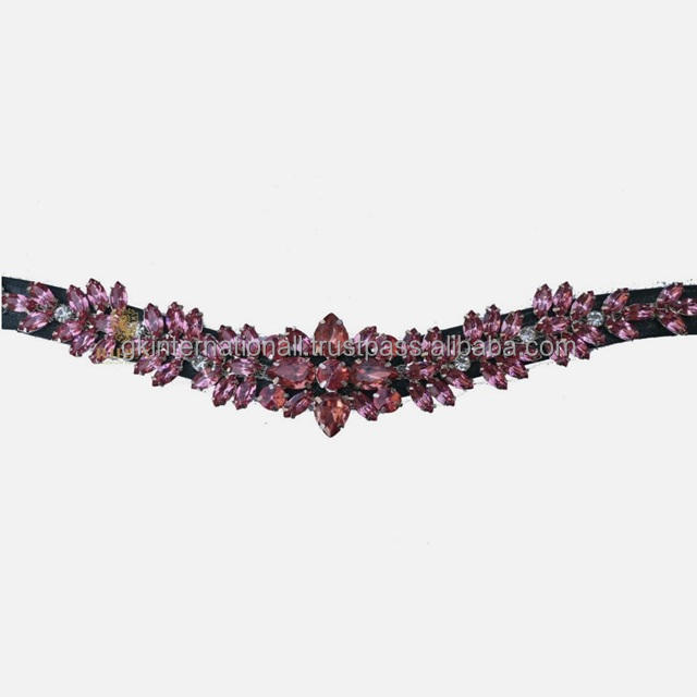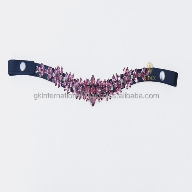สายคาดคิ้วหนังม้าสีดำงานแฮนด์เมดแบบพรีเมียมสายคาดคิ้วประดับคริสตัลเป็นประกายวิบวับมีทุกขนาด