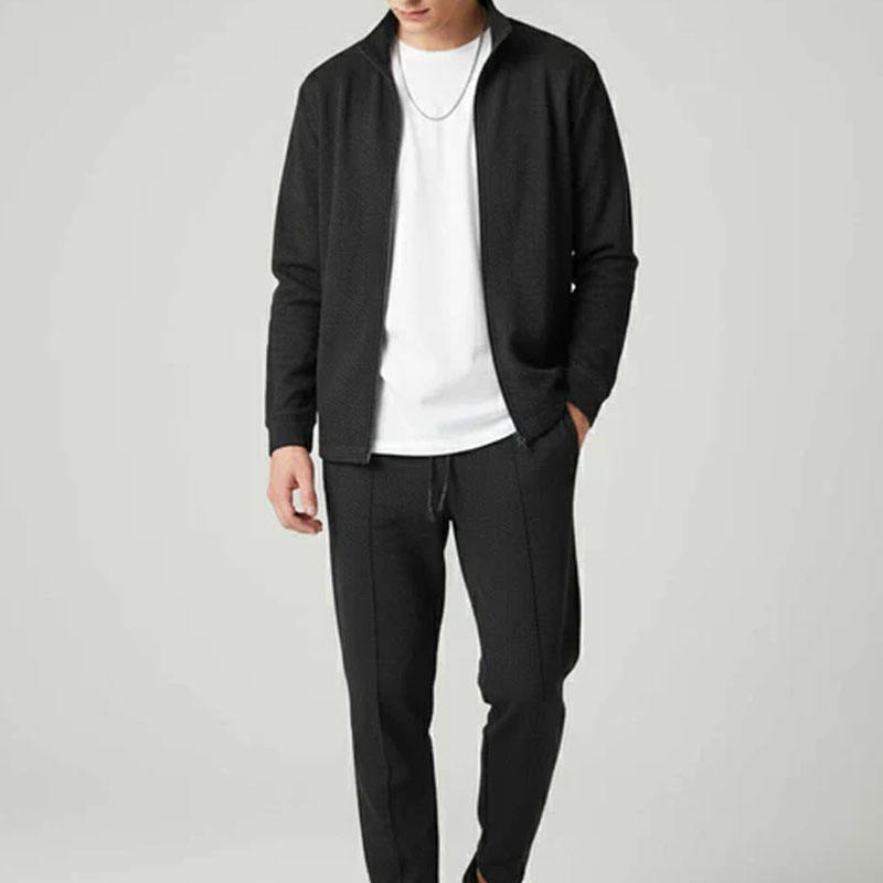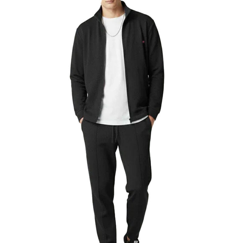 ชุดวอร์มผ้าวาฟเฟิลแบบมีซิปสำหรับผู้ชายเสื้อแจ็คเก็ตและกางเกงวิ่งแบบมีซิปที่ทันสมัยเหมาะสำหรับชุดลำลอง
