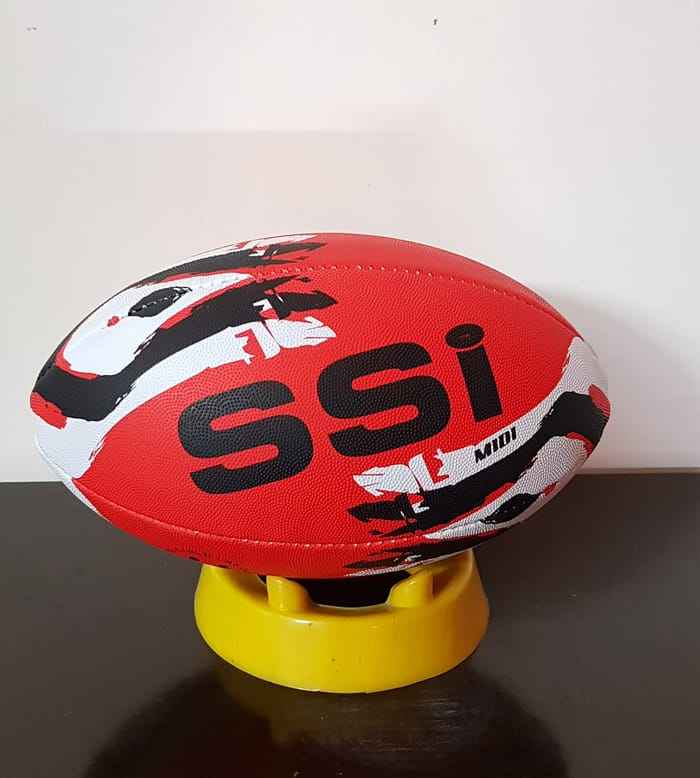 ลูกรักบี้พรีเมียมแบบมิดิ เนื้อนุ่ม ทนทานต่อแรงกระแทกสูง กันน้ำ เหมาะสำหรับการแข่งขันแบบสบายๆ การฝึกทักษะ การจัดแสดง มอบเป็นของขวัญสำหรับแฟนรักบี้